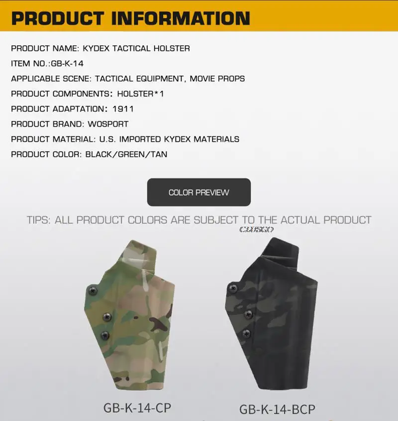Main material: U.S. Imported KYDEX materials