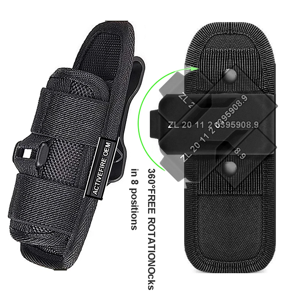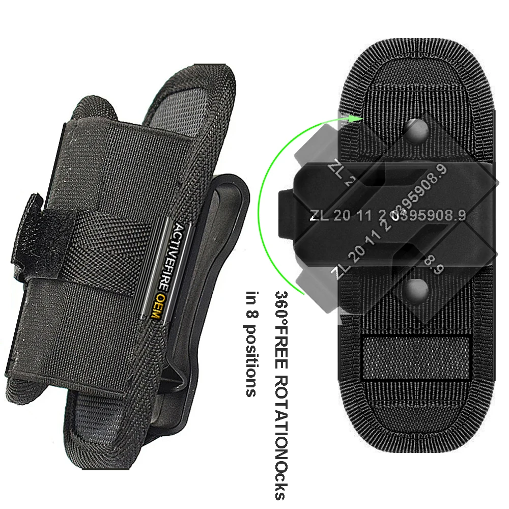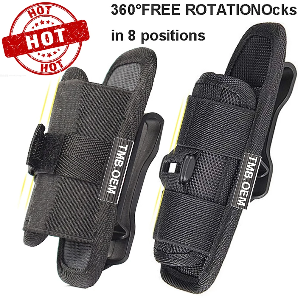 Funda de nailon ajustable para cinturón de linterna táctica con clip giratorio de 360 grados