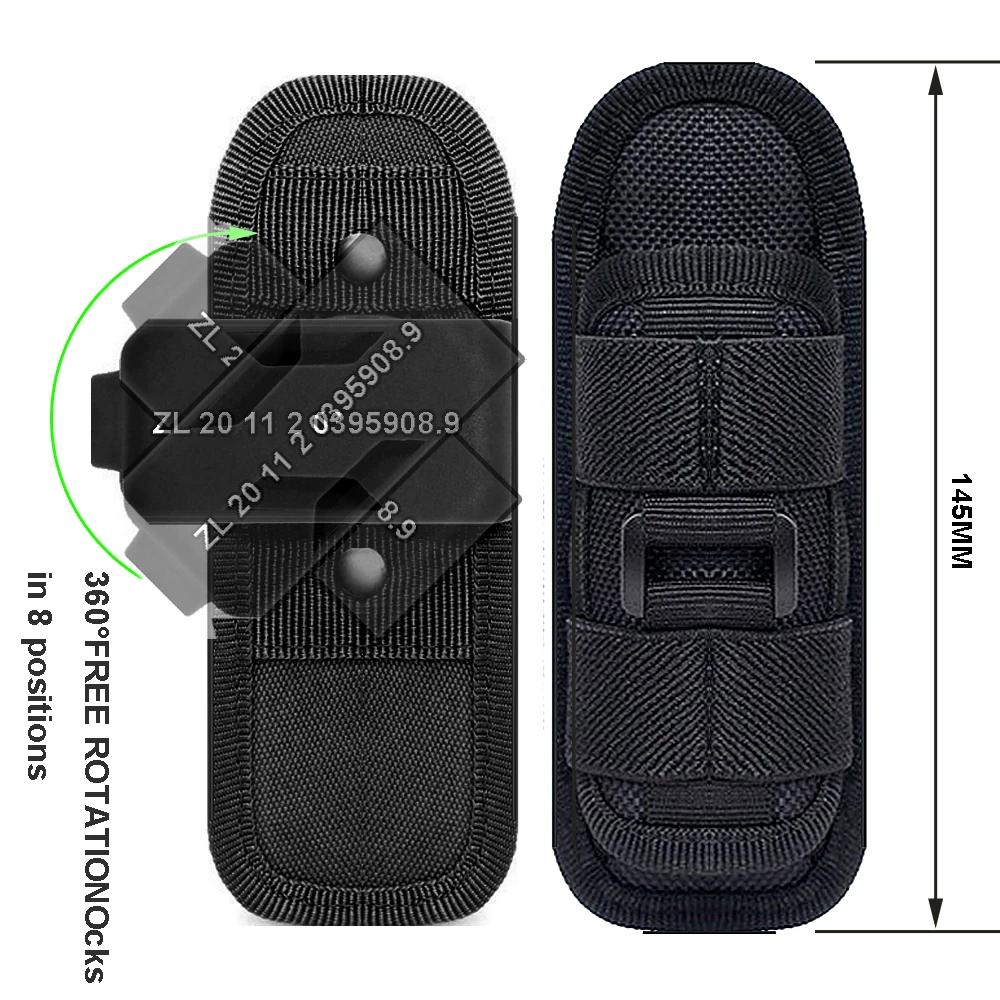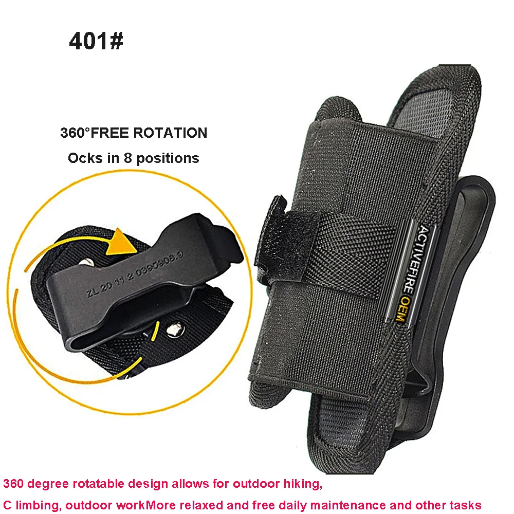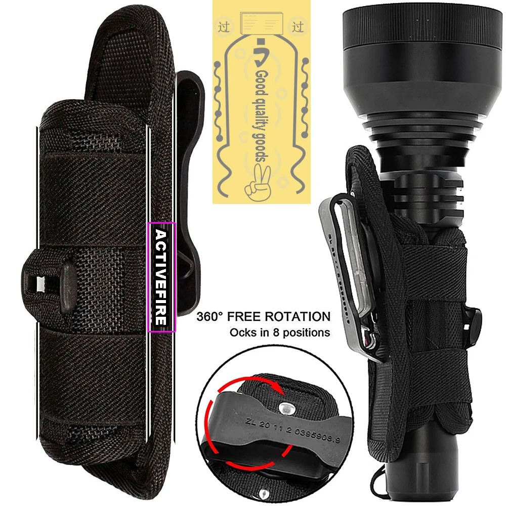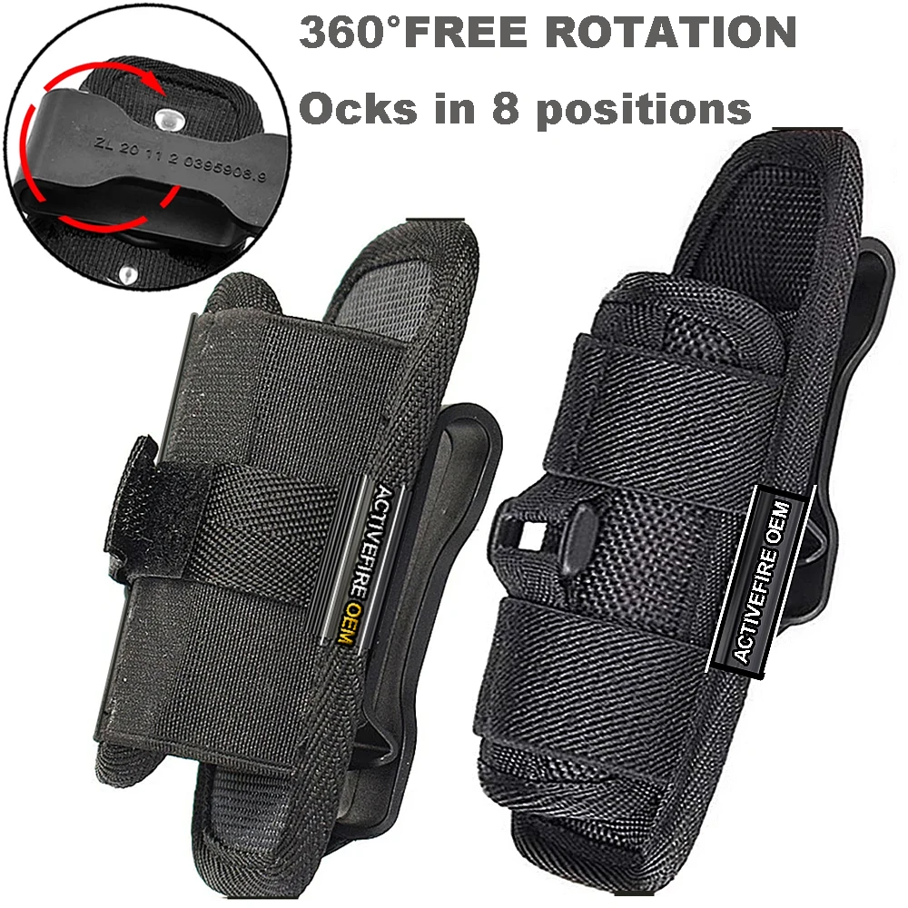 Funda de nailon ajustable para cinturón de linterna táctica con clip giratorio de 360 grados