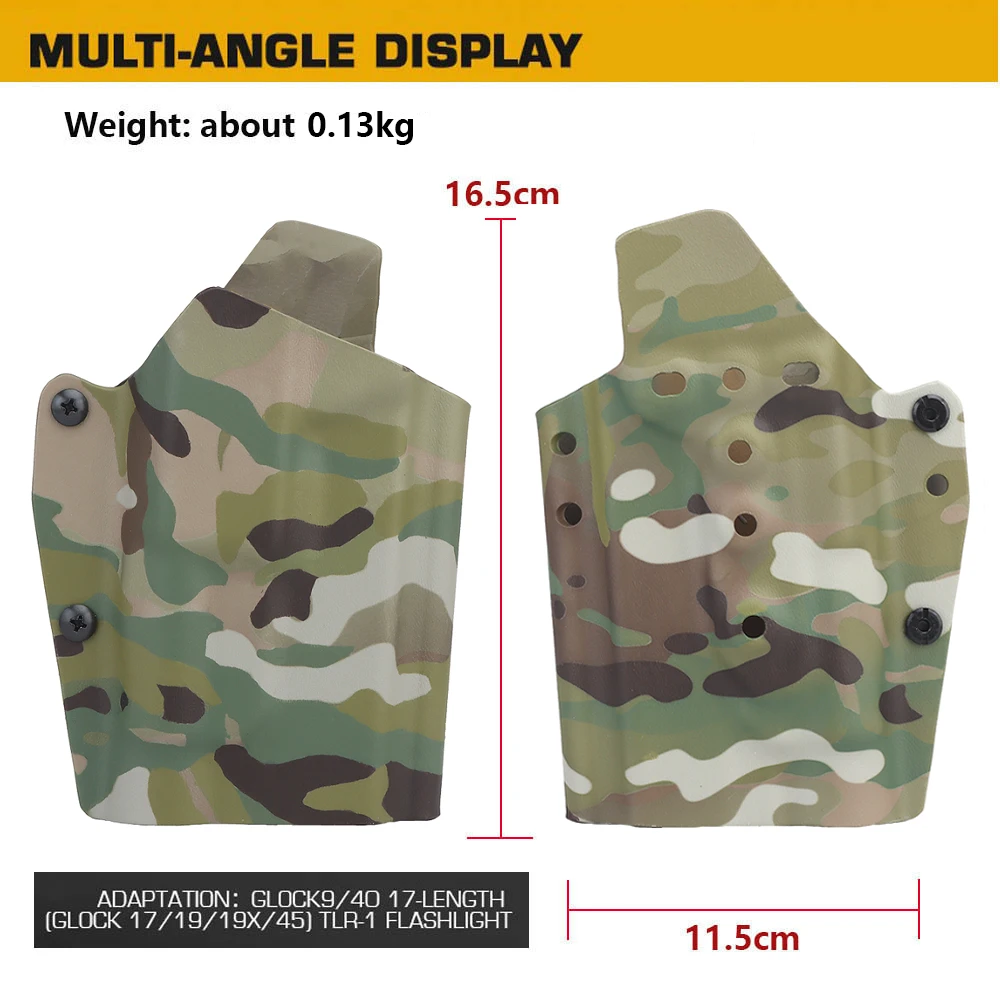 Funda táctica para linterna, Material ligero Kydex para Glock17/19/19X, funda de liberación rápida para caza Airsoft QLS, de tipo de linterna, 1/2/2