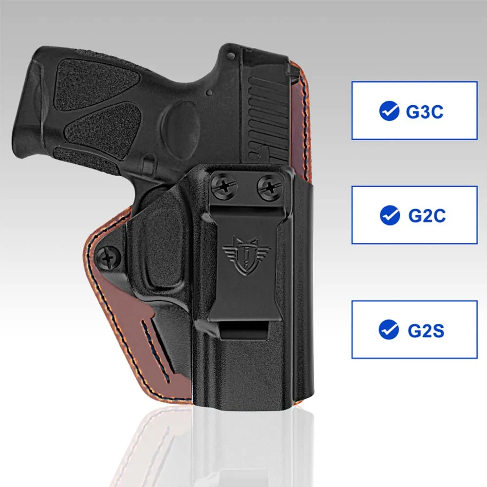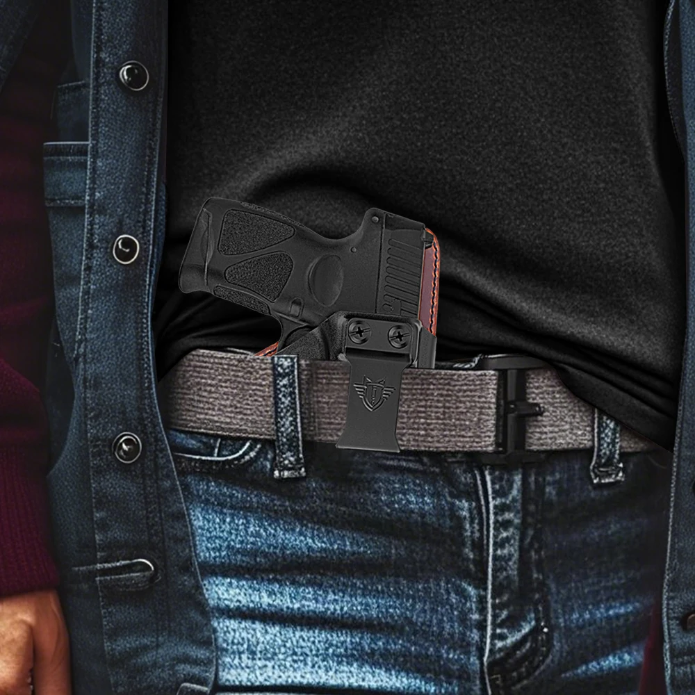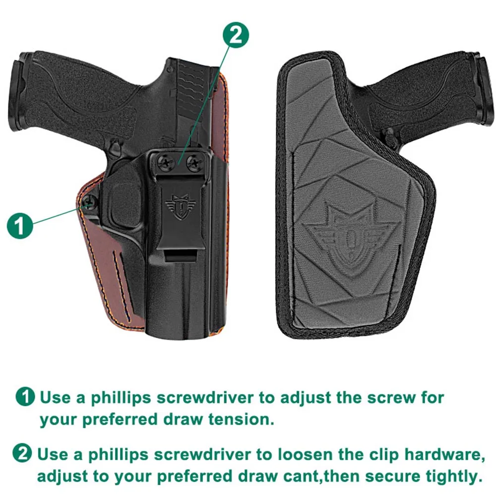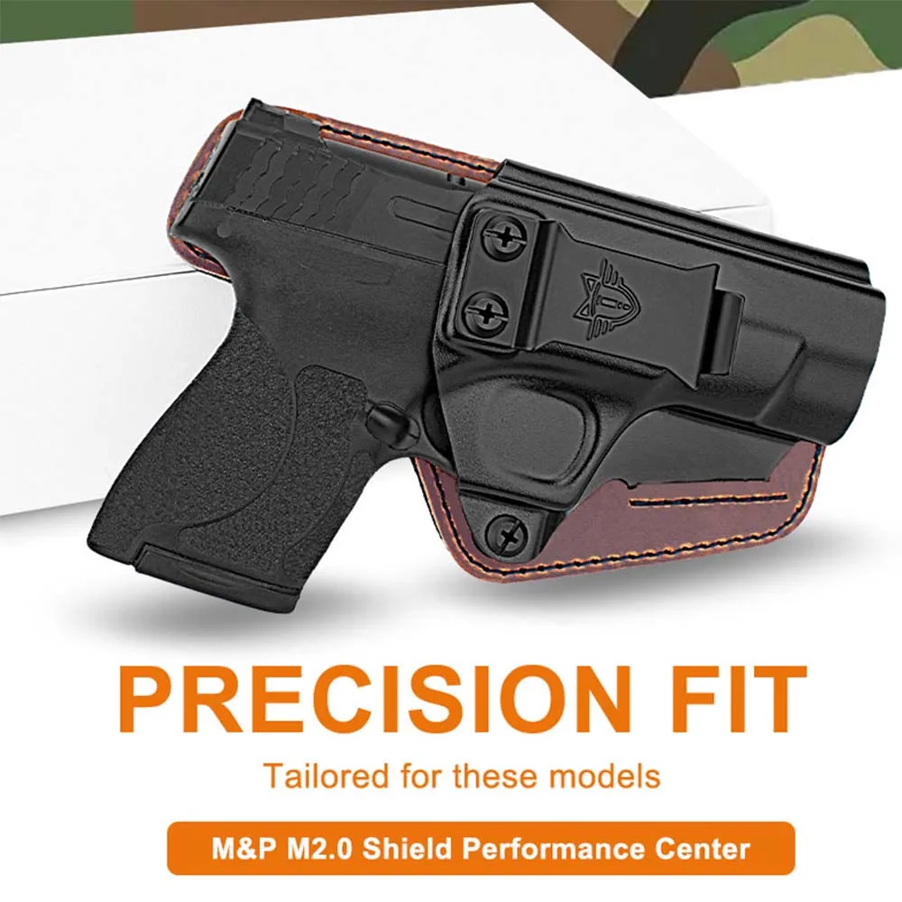 3. 【SEGURIDAD CONFIABLE】 Con una robusta carcasa frontal Kydex, la funda híbrida garantiza una protección confiable del gatillo.El protector contra el sudor de longitud completa está diseñado específicamente para evitar el contacto del sudor con la pistola.