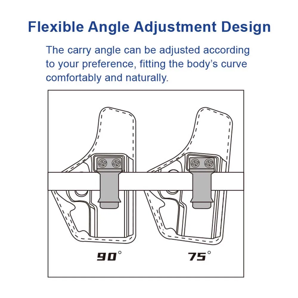 4. 【ACCESO RÁPIDO】 Moldeado personalizado para su arma de fuego específica, la funda oculta garantiza un dibujo suave y una experiencia de reubrimiento en todo momento.Con una inclinación de transporte fácilmente ajustable, puede lograr velocidades de dibujo más rápidas y una ocultación profunda óptima debajo de la ropa.