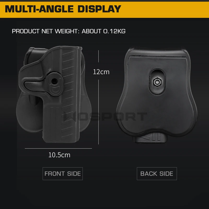 -- Nombre: funda de pistola -- Material: poliuretano -- Color: negro -- Entrega: usuarios zurdos/diestros (opcional) Paquete incluido: -- 1 * funda