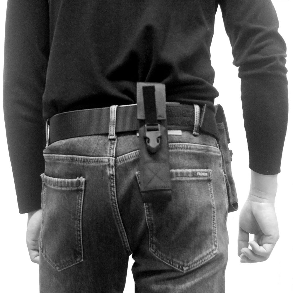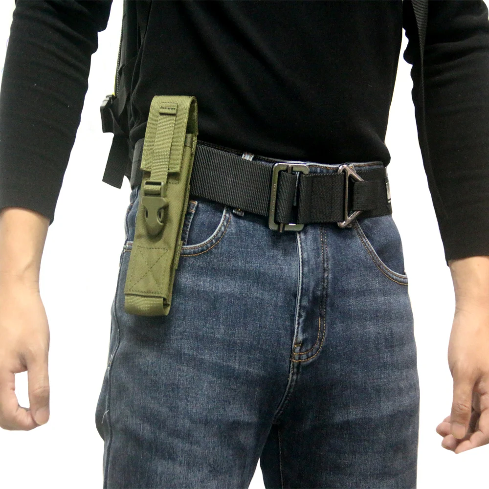 2. Con la correa abrochada, esta bolsa para linterna te permite sacar y poner los dispositivos cómodamente sin preocuparte de que los dispositivos en el interior se caigan fácilmente.