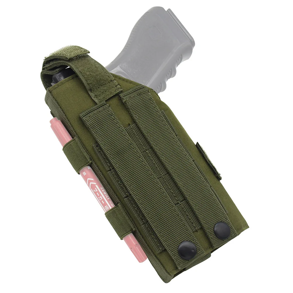 Es simple pero Altamente Funcional. Ajústelo a la pierna y fije su equipo/pistola a sus correas MOLLE. Es ideal para fundas de pistola, pero cualquier bolsa MOLLE funcionaría, y es bueno tanto para usuarios zurdos como diestros.