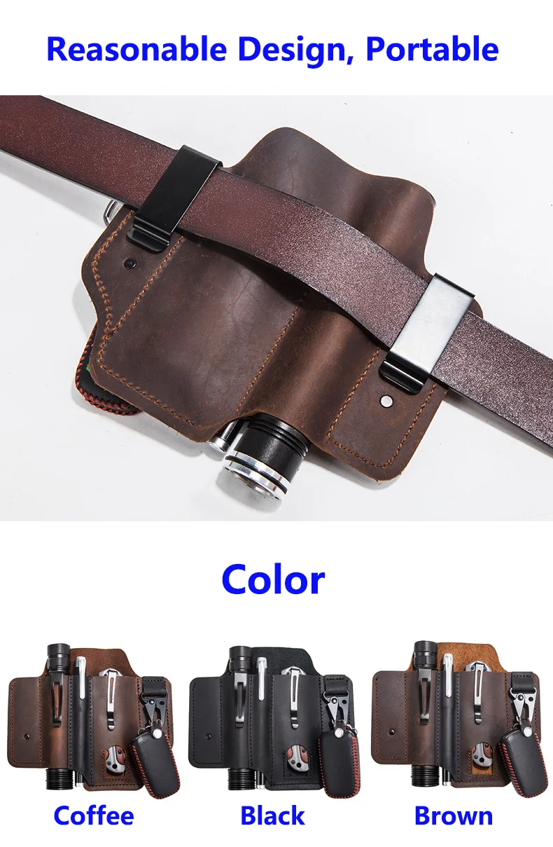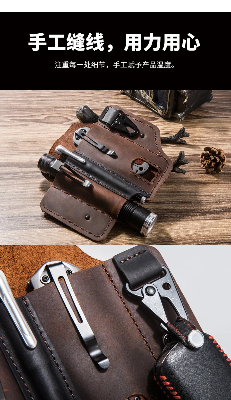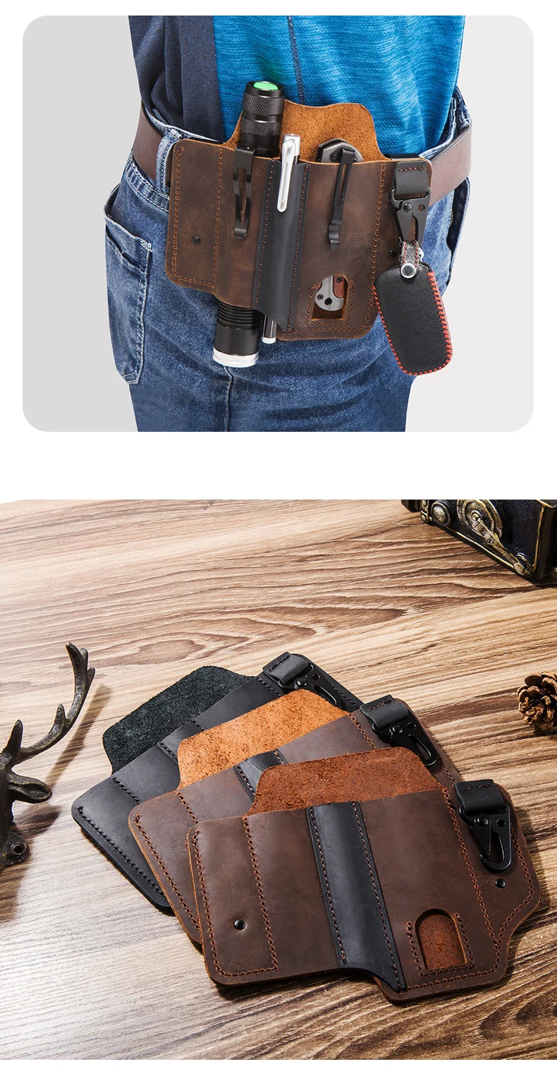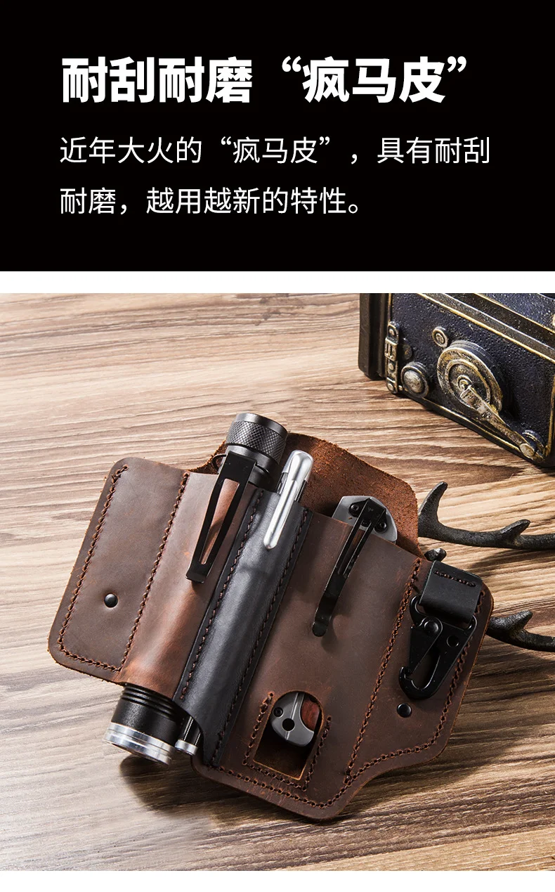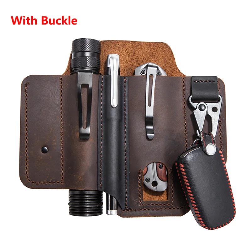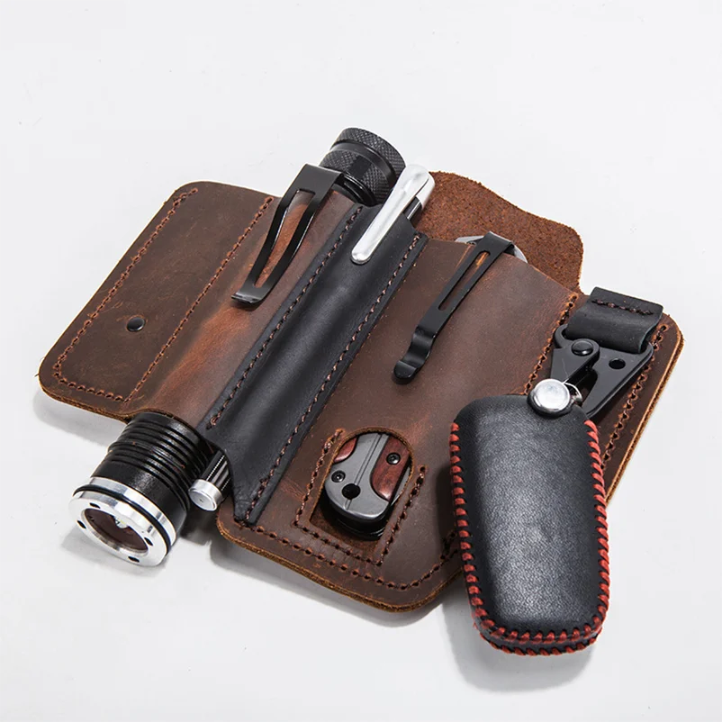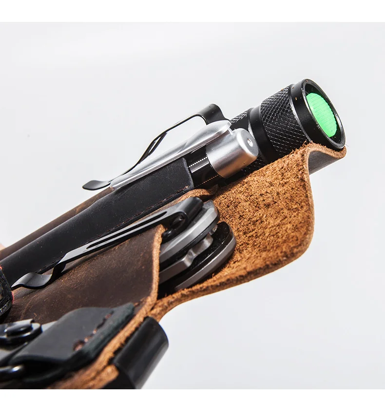 Cuero de vaca genuino con hebilla al aire libre portátil táctico multifunción cinturón funda EDC bolsillo de bolígrafo táctico