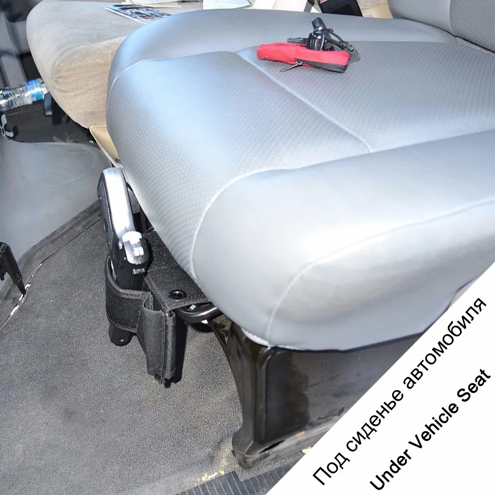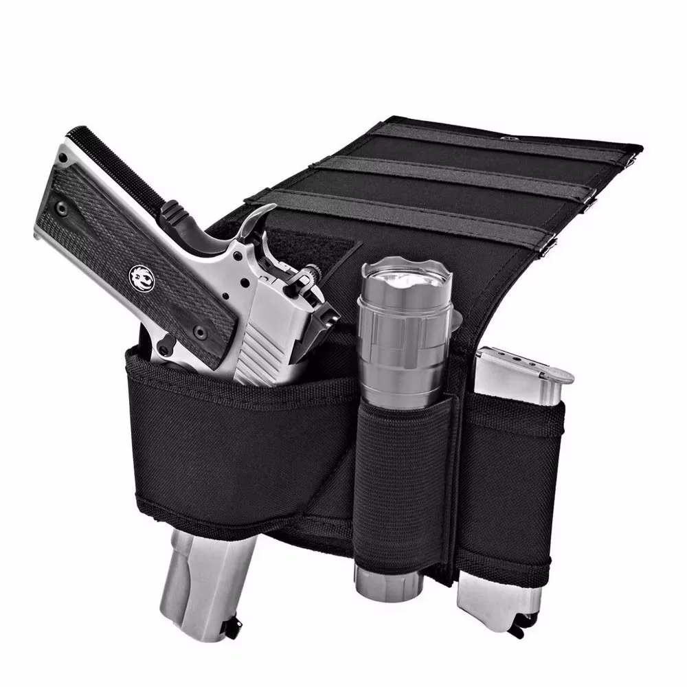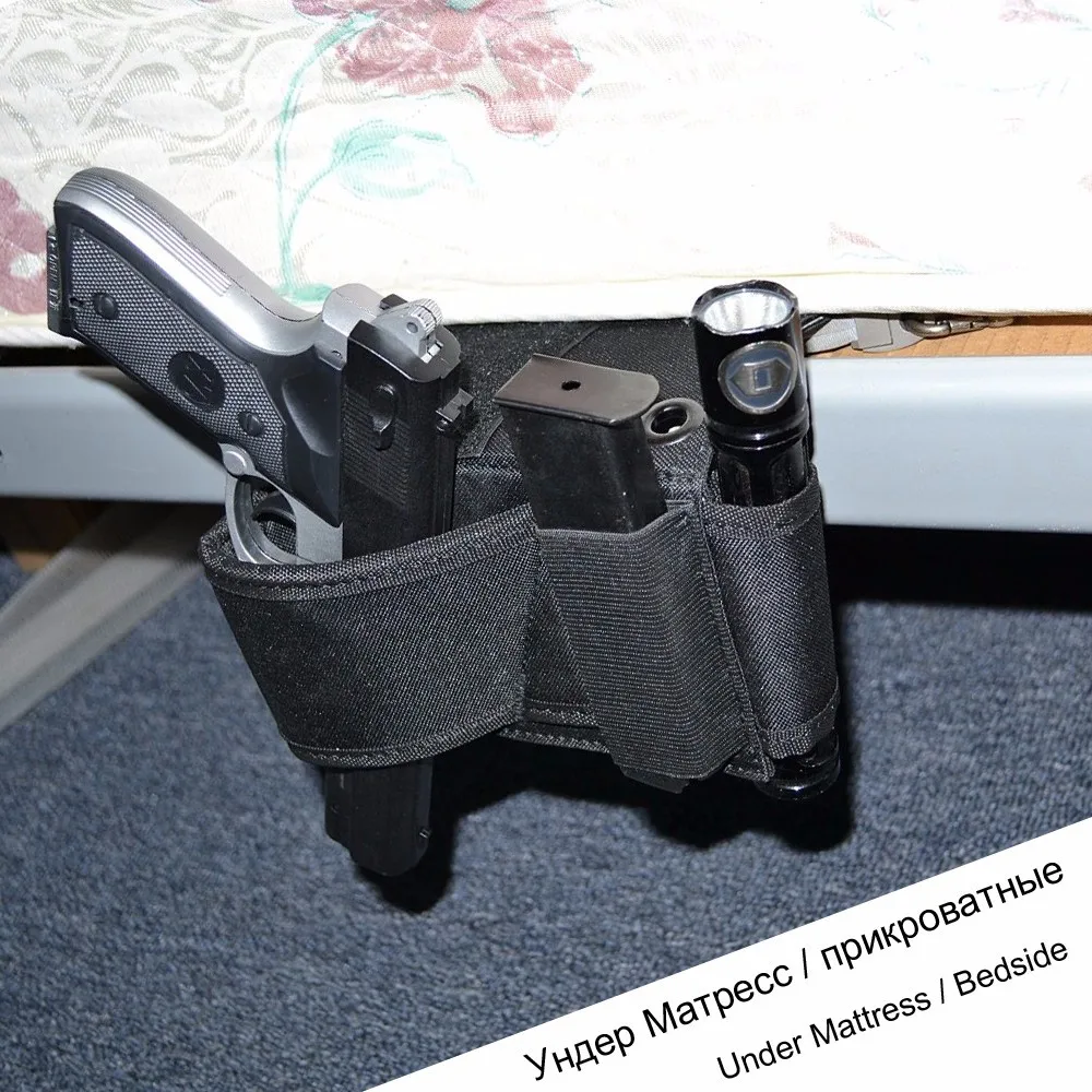 Funda táctica oculta para pistola de asiento de coche, funda oculta para pistola debajo del colchón, soporte para linterna, bolsa para revista, organizador lateral para cama