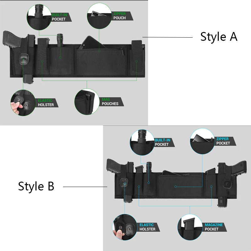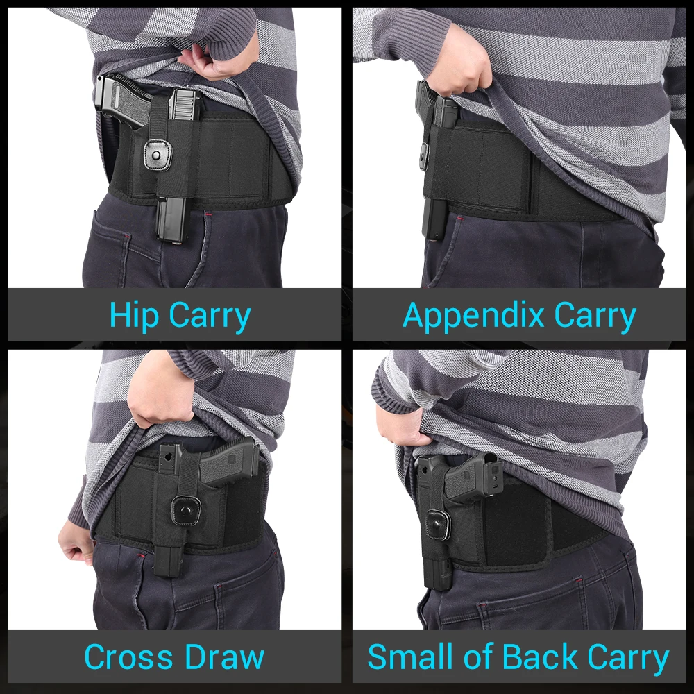 - La banda para el vientre oculta está diseñada para adaptarse a cualquier pistola y revólver micro, compacto, de tamaño mediano y de tamaño completo.
