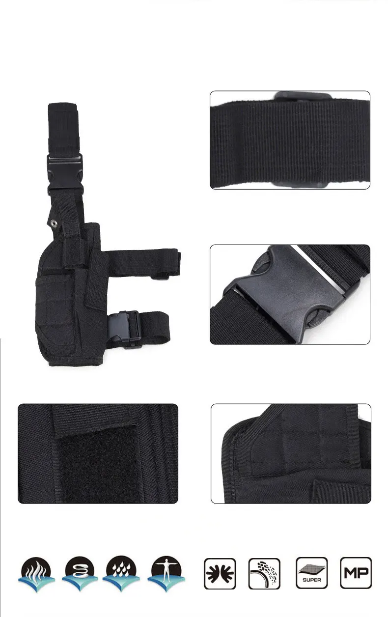 Funda táctica para pierna Airsoft, pistola de caza al aire libre, funda para pierna, bolsa con correa mágica ajustable, conjunto de mallas