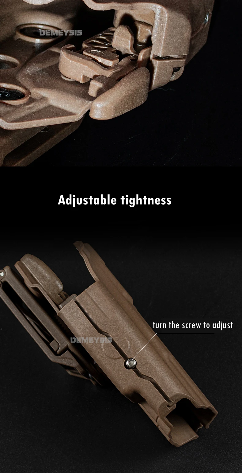 ●Retención ajustable: nuestras fundas universales para armas ofrecen ajustes de tensión para adaptarse a más de 30 pistolas y establecen la tensión a su comodidad personal para garantizar un sorteo rápido y suave en todo momento.Para realizar ese ajuste, ajuste el espacio adecuado para adaptarlo a su arma aflojando o apretando tornillos con la llave.