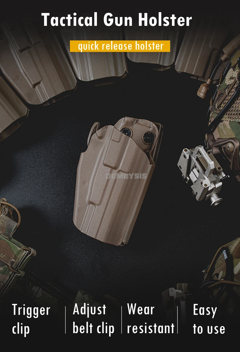 ●Durabilidad: esta funda para pistola está fabricada con un material duradero y liviano que es resistente a impactos, calor y rayones, ofreciendo un acceso rápido y confiable.Está diseñado para el entrenamiento táctico, la caza, el alcance, las fuerzas del orden, la defensa personal, el transporte diario y el transporte abierto de cualquier tipo.
