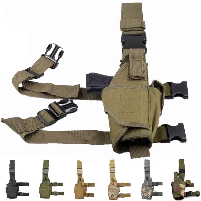 Funda táctica para pistola, pierna caída ajustable, muslo, funda de cuero, mano derecha, bolsa táctica negra para exteriores
