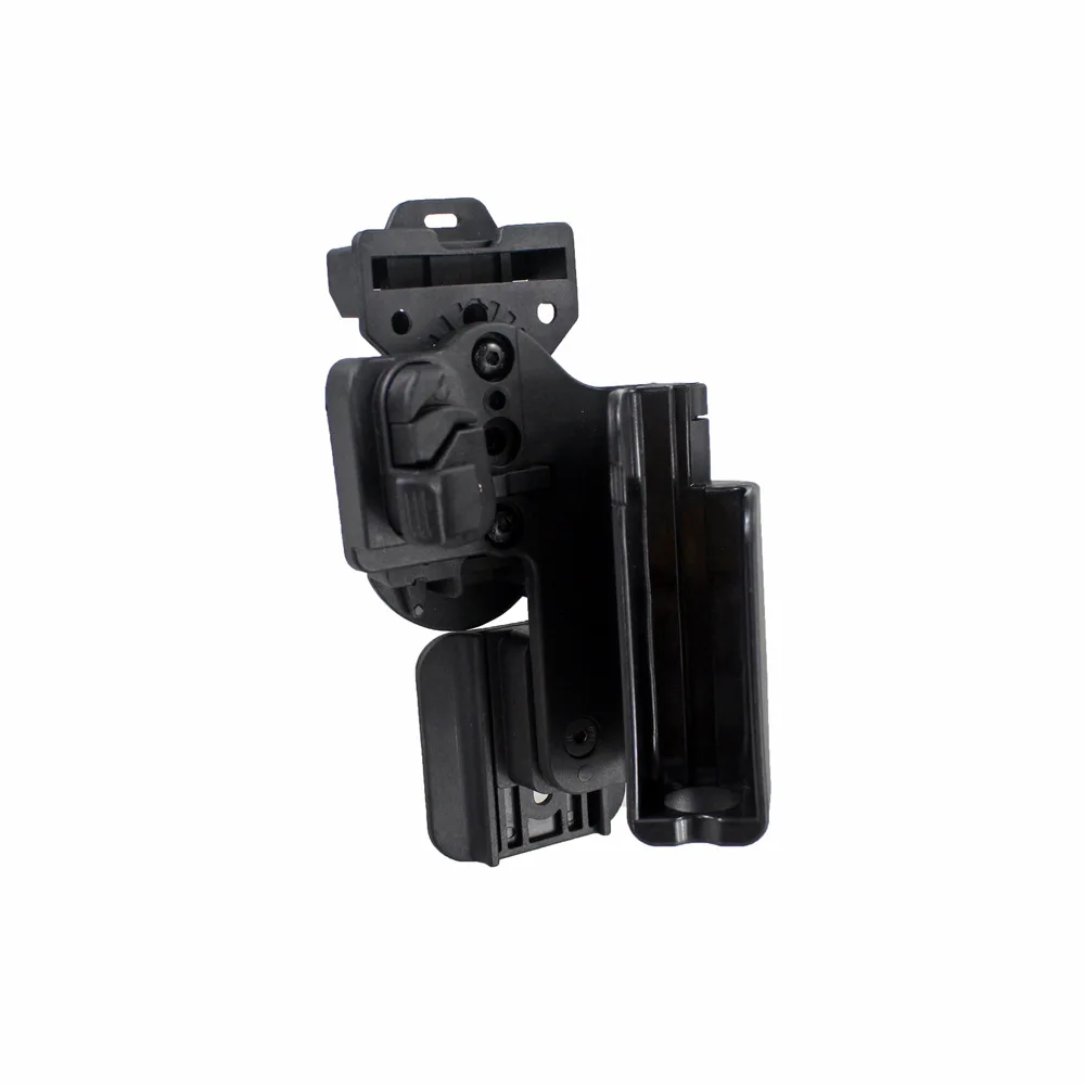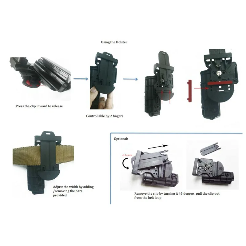 -Tactical OWB Condition 3 Carry Quick Holster Mano derecha Ajuste para Glock 19/23 y Glock 17/22-Compatibilidad de armas de fuego: Glock 19, Glock 23, Glock 17, Glock 22-Construcción de polímero moldeado por inyección resistente-Peso ultraligero y cómodo de llevar-Sistema de retención activa de bloqueo-La ranura de guía de la vista frontal y los imanes ayudan a la reindexación de la diapositiva para una reorganización rápida-El Sistema de bucle de cinturón ajustable acomoda cinturones de varios tamaños-Ángulo de inclinación ajustable-Altura de funda ajustableEspecificación-Material: polímero moldeado por inyección de alta resistencia-Tipo: Funda de dibujo de mano derecha-Peso: 248gPaquete1 funda táctica de transporte rápido