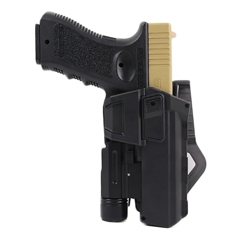 Se adapta al cinturón táctico de 2 pulgadas (5 cm).Longitud de la funda 135 mmSe puede utilizar para pistola G17 gen 1-4 con linterna o láser.Ángulo de tracción ajustablePara usuario del lado derechoPresione el botón para desbloquear y dibujarColor: negro/arenaPeso: 130 gPaquete incluido:1 * funda para pistola