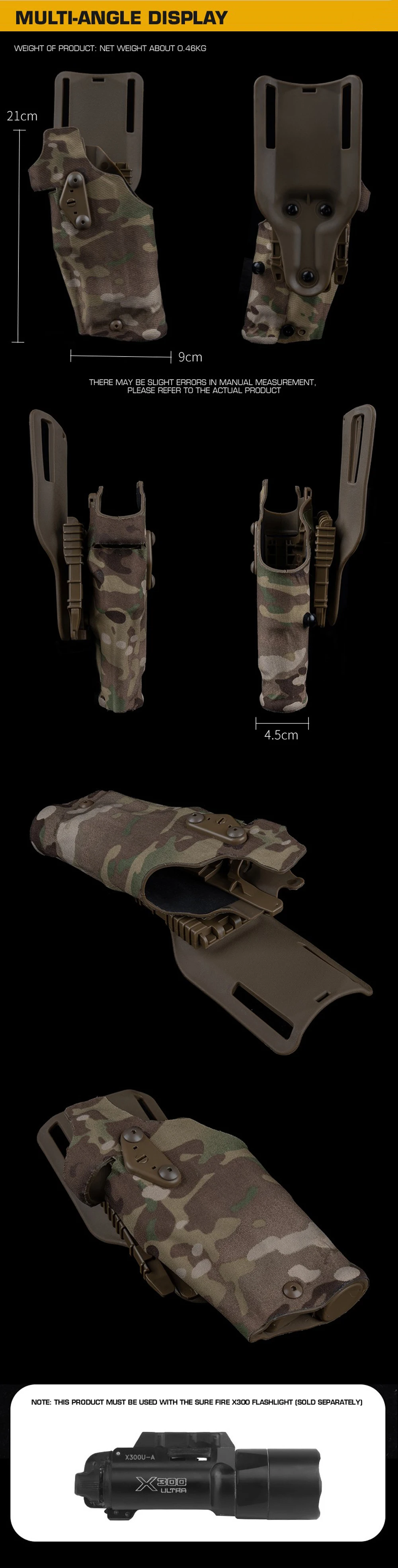 Tactical Pistol Holster Left & Right Hands Compatible G17 + X300U-A Flashlight Quick Release Hunting Combat Airsoft Holster Gear