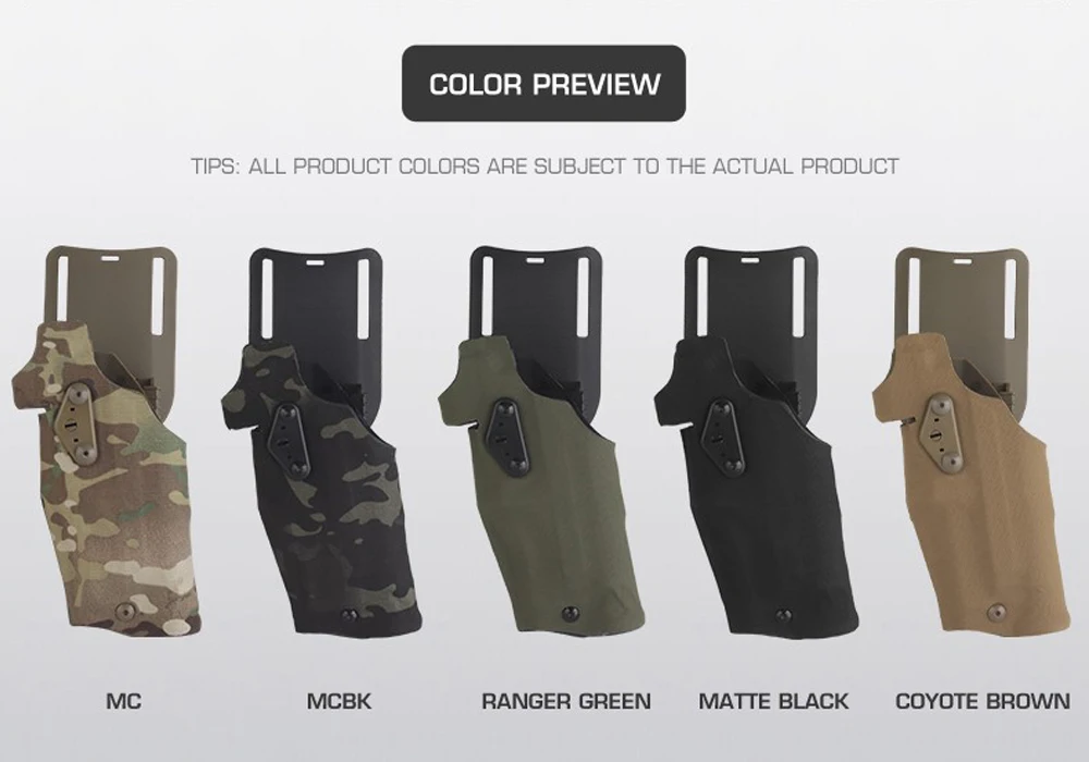 Copia muy bien hecha del Safariland 6394. El QLS funciona muy bien y la retención es excelente. Se adapta a un G17 real con un x300 y creo que debería funcionar con un RMR. Si tienes una pistola de airsoft o una pistola de entrenamiento, es posible que tengas que afeitarte la parte que va en el cañón si tienes el x300 montado, lo que hace que se tambalee un poco. También me puse una pistola de entrenamiento g17 Gen 6 con un punto rojo ACRO, pero tenía que afeitarte la parte del QLS y la funda frente al capó RMR, ¡pero ahora encajará maravillosamente! ¡Definitivamente volvería a comprar esto! La calidad de los componentes también es muy bien hecha y el envío fue muy rápido. ¡El vendedor también responde mucho!