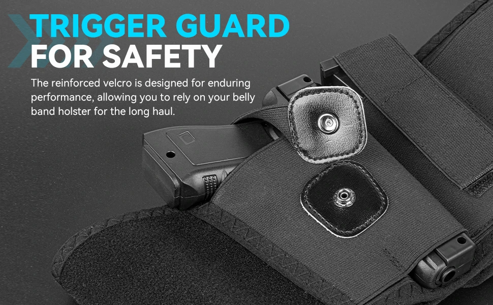 - Con un protector de gatillo, esta funda para banda para el vientre para transporte oculto cuenta con una correa de retención con botón a presión, lo que garantiza un sorteo seguro, rápido y sin enganches en la pistola.
