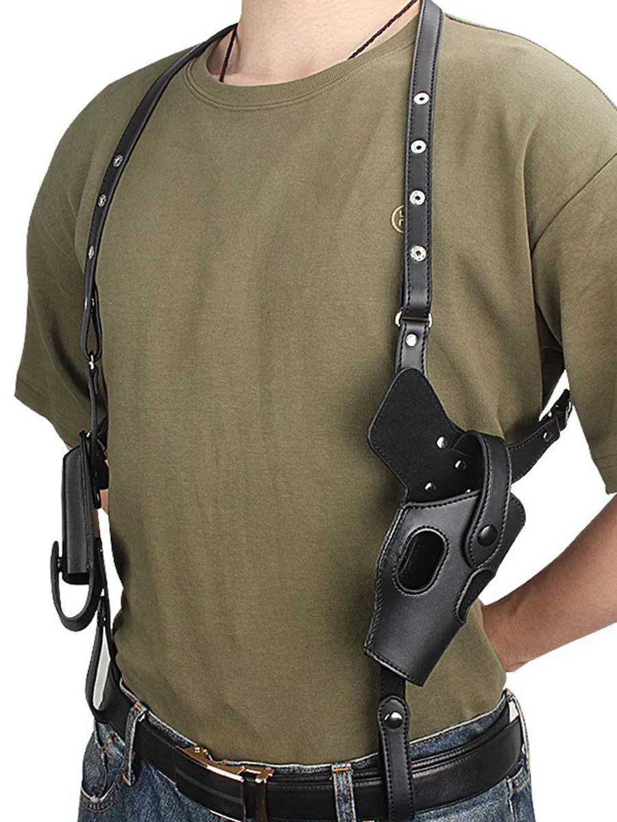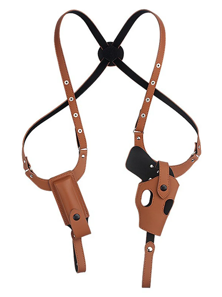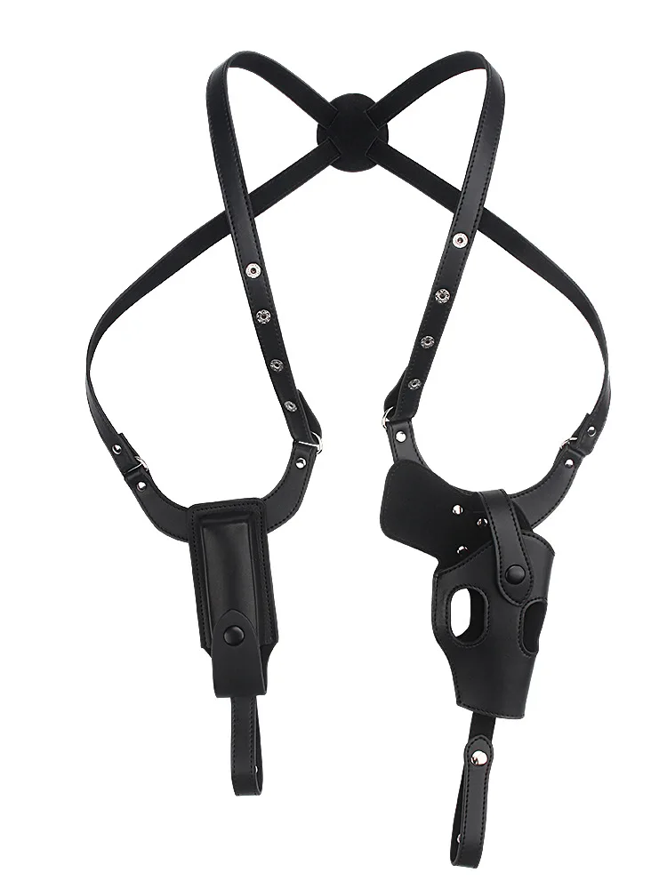 2. Diseñado con estilo de doble correa para el hombro, muy fuerte y elegante, decorado con remaches.No importa lo que lleves puesto, puedes sacar rápidamente una pistola de tu axila.