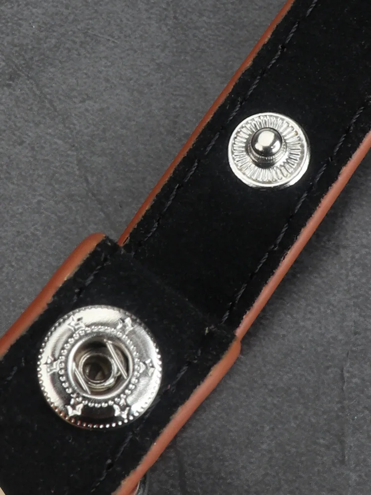 3.Cierre de botón de metal para ajustar el tamaño, un lado es una funda de cuero, una talla es un clip, se puede usar dentro o fuera de la chaqueta