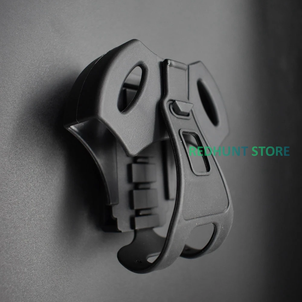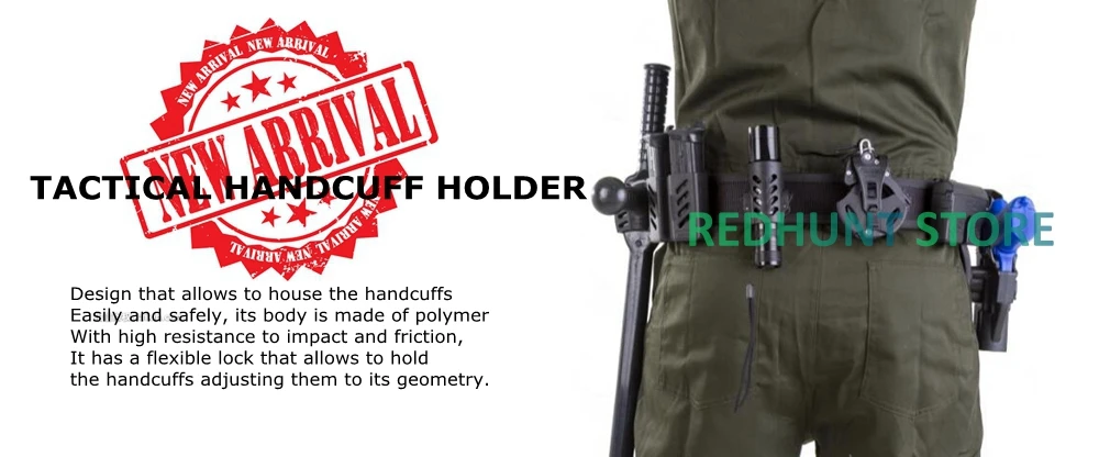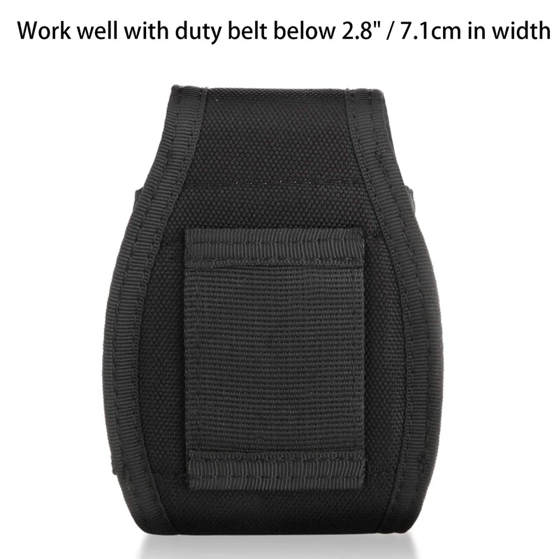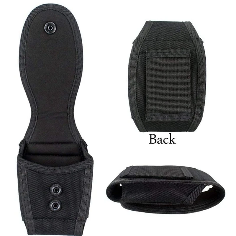 Correa trasera anti-desprendimiento: se puede unir una correa trasera a la mayoría de cinturones de trabajo con un ancho de menos de 2,75 pulgadas/7 cm, el diseño doble de pegar y presionar permite que el estuche se una firmemente al cinturón de servicio; el estuche de las esposas no se caerá incluso durante actividades intensas