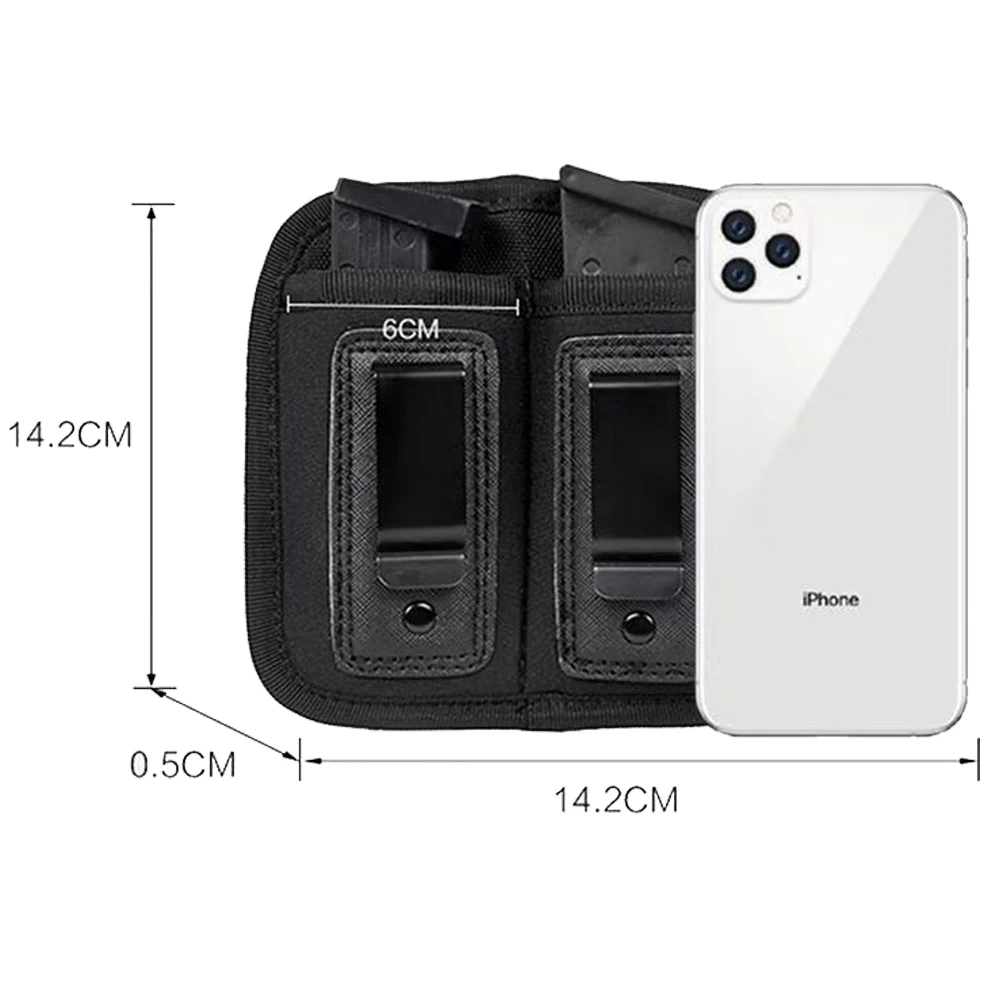 4. Dimensión exterior: 14 cm * 6 cm.Se adapta a modelos grandes de pila doble de 9 mm y 0,40 mm como Glock 19, 21, 22, 23, Ruger SR40, XD de tamaño completo.