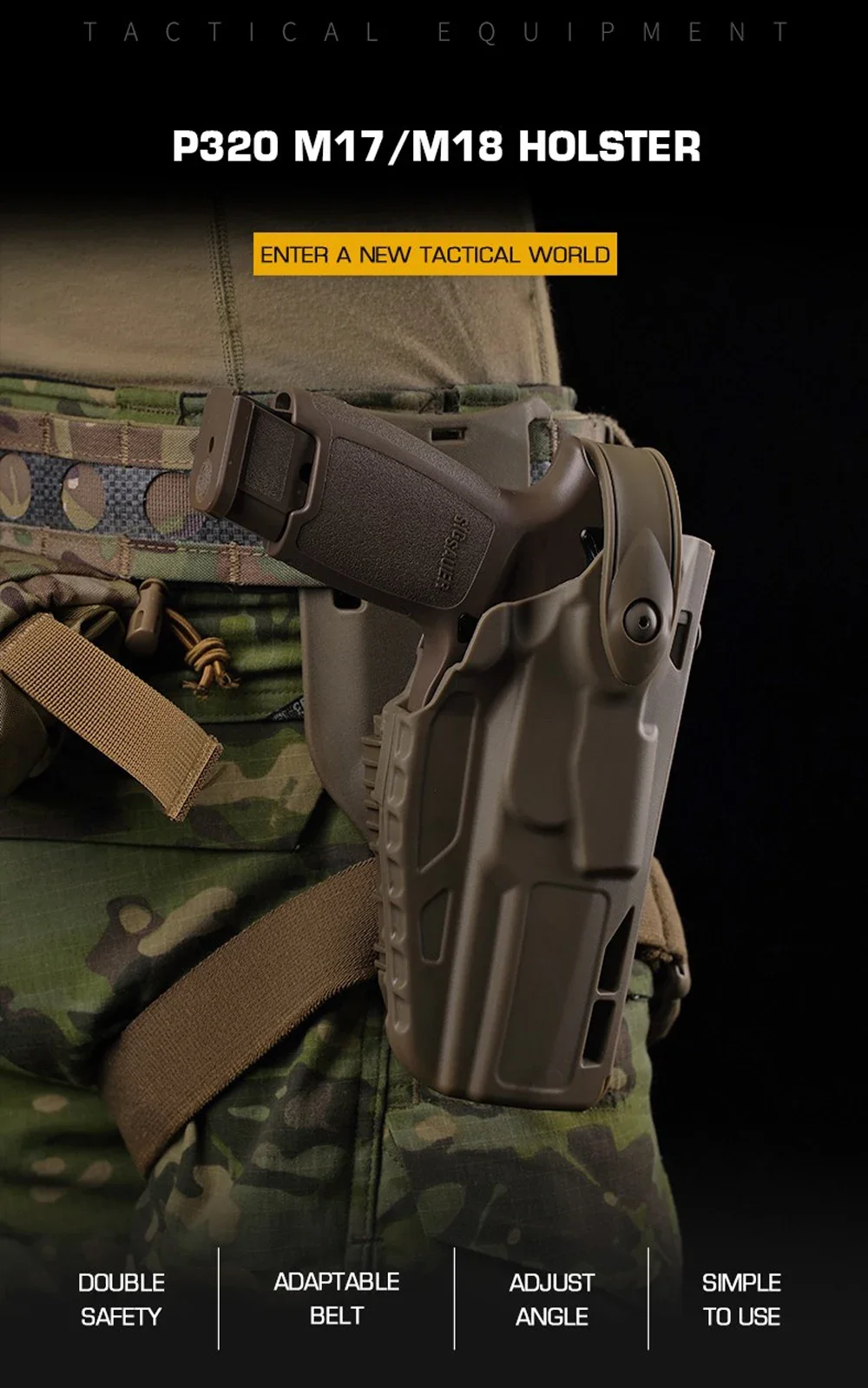 Funda táctica SIG P320 M17/M18, funda para pistola MK-17 Airsoft, doble bloqueo de seguridad con cinturón, pierna caída, sistema QLS de plataforma
