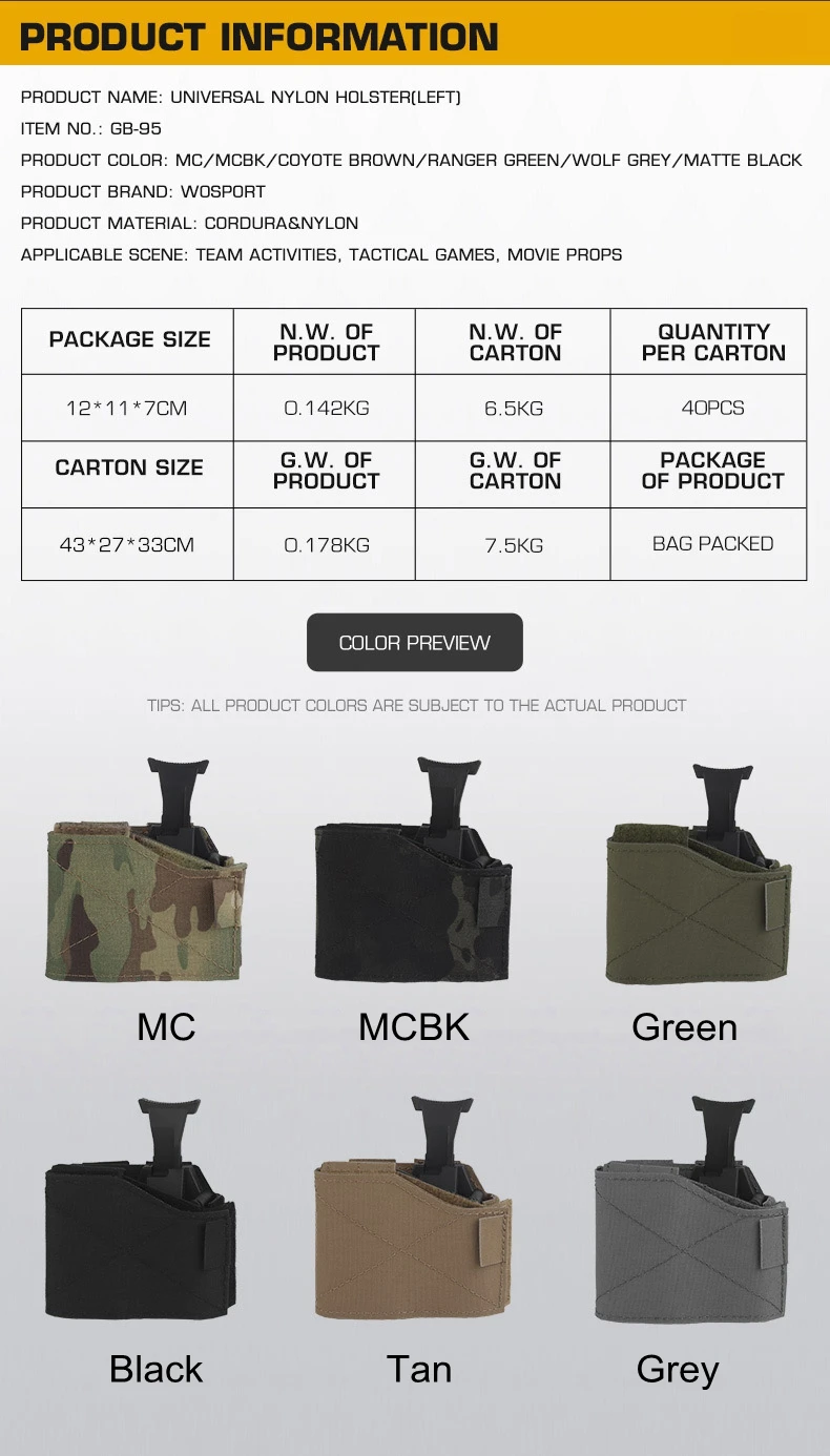 Funda táctica Universal para mano izquierda, funda para pistola con cinturón de liberación rápida Molle, funda para pistola Glock SIG H & K CZ S & W 1911