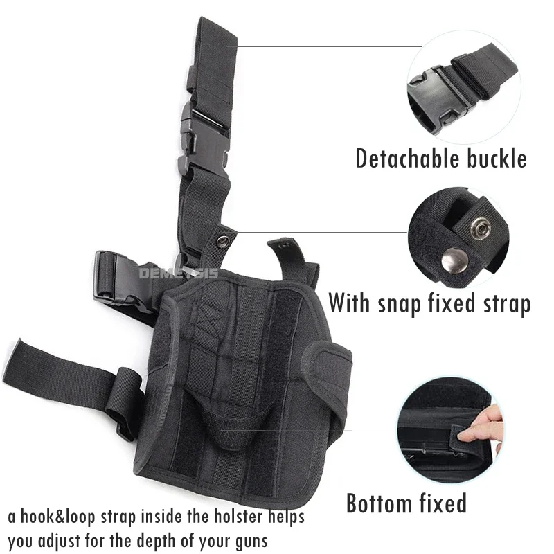 ● Hecho de nailon resistente, duradero y resistente al agua, generalmente para mano derecha, muslo derecho.