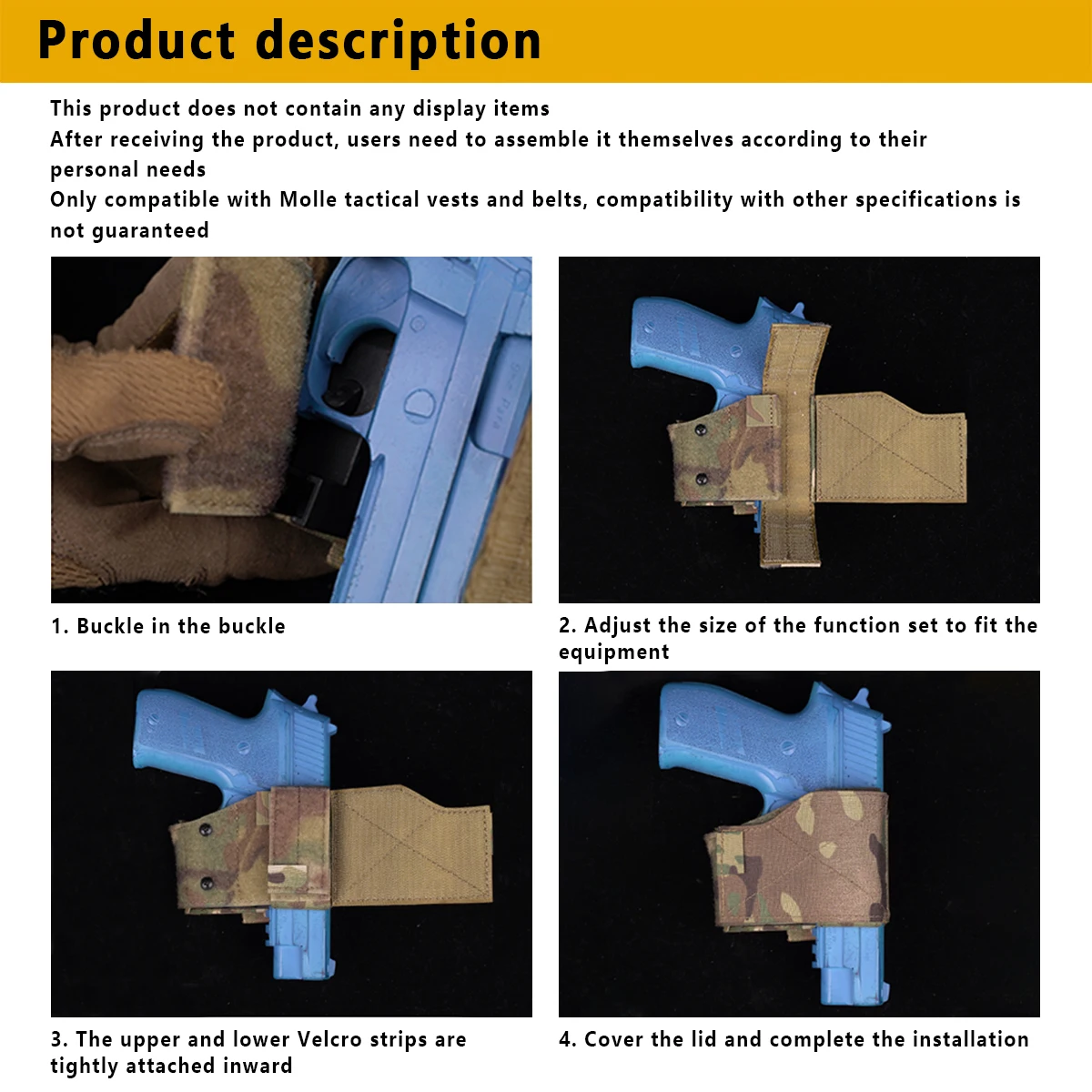 -Correa MOLLE en la parte posterior, adecuada para todos los equipos tácticos MOLLE.Especificaciones: Material: nailon
