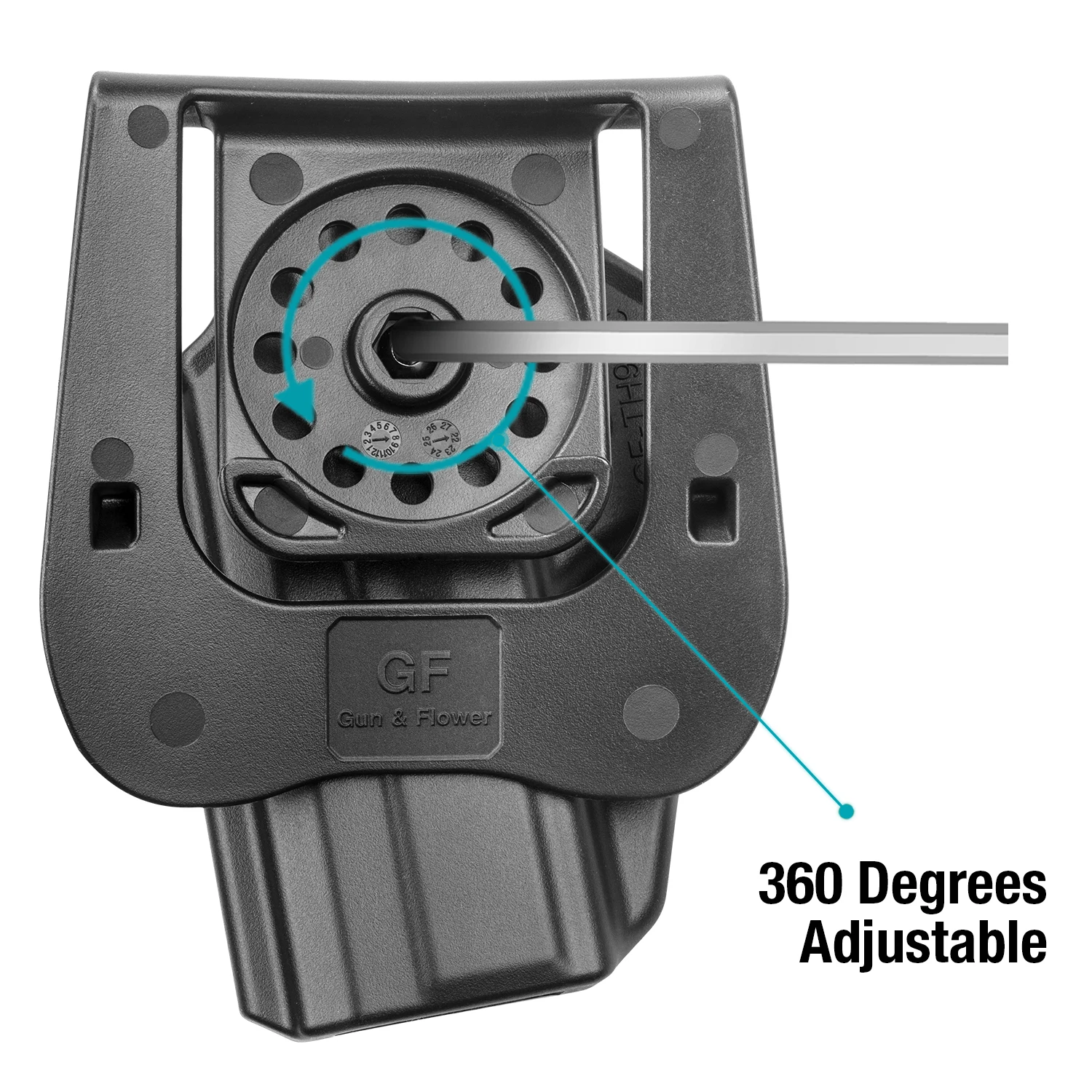 ★【Retención y Cant de 'POSI-CLICK' ajustables】: Cuando coloca tu pistola Taurus G3, escuchará un "CLICK" satisfactorio que le permitirá saber que su arma está con funda de forma segura, no saldrá a menos que la desee.Cant (o ángulo de transporte) es ajustable de -180 a +180 grados, garantiza un dibujo rápido y suave, personalizado para sus necesidades, apêndice, lado fuerte, detrás de la cadera o transporte cruzado.
