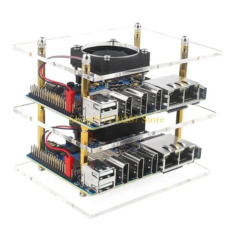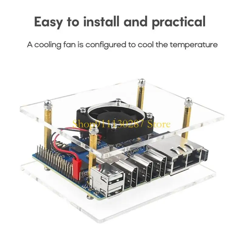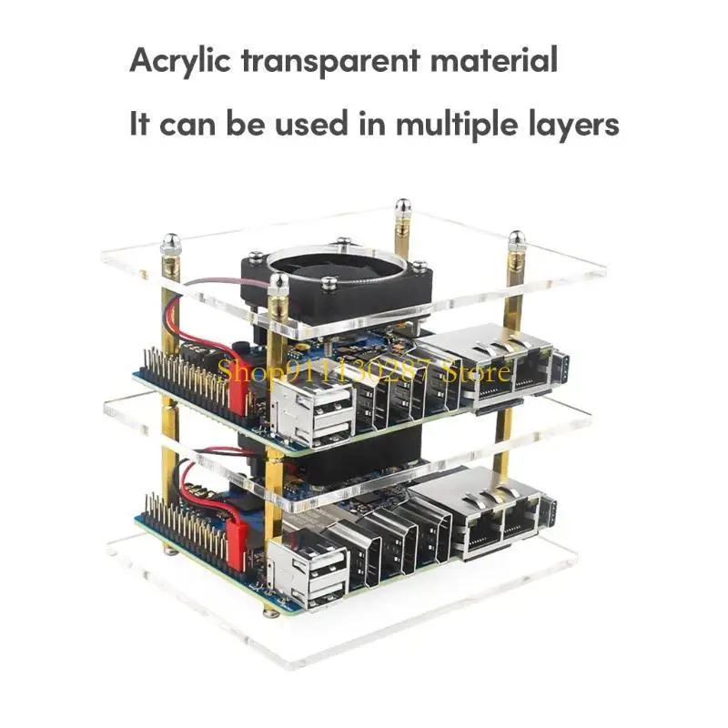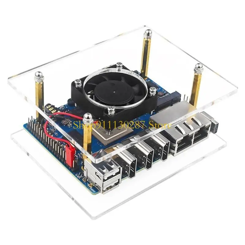 El material acrílico transparente proporciona una vista transparente del orangePI 5 permitiéndole inspeccionar visualmente la placa y sus componentes sin abrir la carcasa.Esto ayuda a monitorear o verificar la placa.