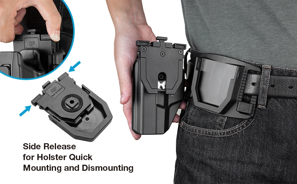 Comentarios de bloqueo y cubierta protectora de gatillo: esta funda proporciona retroalimentación de bloqueo con un sonido de clic nítido cuando el arma está bien colocada en la funda y no saldrá a menos que desee presionando el botón de liberación.Cubra todo el acceso al gatillo, cero posibilidades de descarga negligente, sin riesgo de presionar la liberación del cargador.