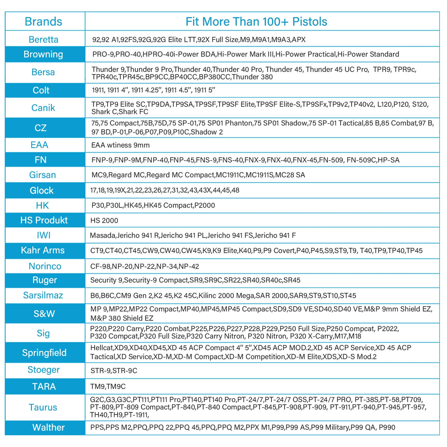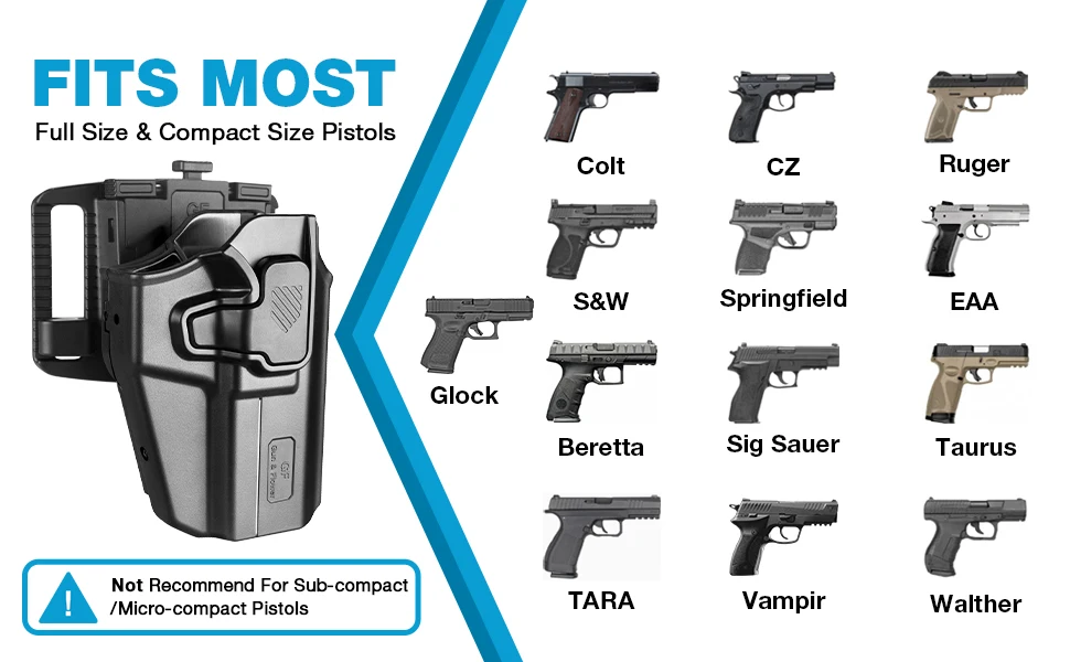 Nota: esta funda universal no es para pistolas microcompactas ni para algunas pistolas subcompactas, como el escudo m&p de 9 mm-3,1 '' y el ruger lc9/lc380, etc. No apto para accesorios de luz/láser.