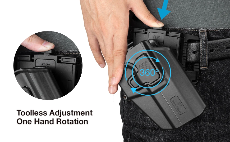 Manship de fin de obra: hecho de material de nailon PA66, que es resistente a bajas y altas temperaturas, está diseñado para entrenamiento táctico, caza, ejército, alcance, agencias de aplicación de la ley, defensa personal, transporte diario y transporte abierto de cualquier tipo.Esta funda se adapta a cinturones de 1,5', 1,75'', 2,0'' de ancho. La paleta es ajustable en 360 grados para todas las posiciones de transporte.