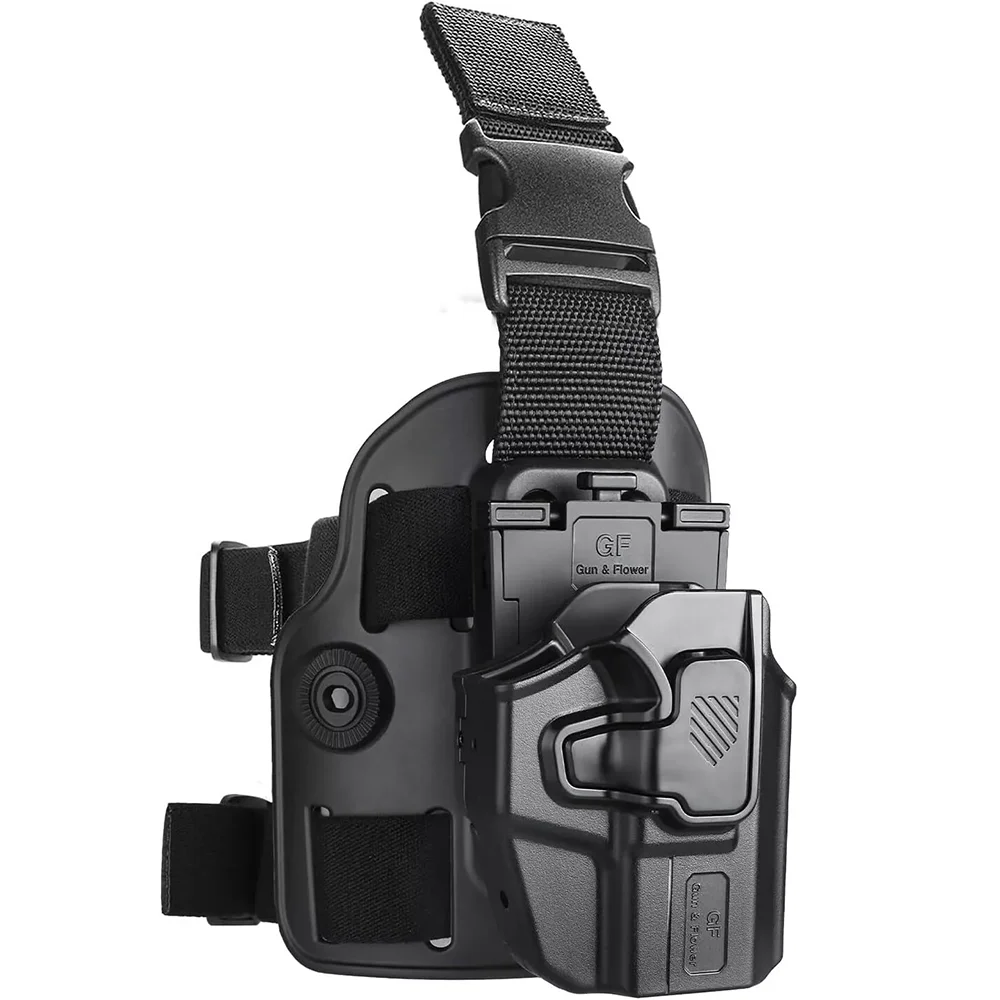 Correa de pierna ajustable con 360° Inserción rápida giratoria: cuenta con una correa ajustable para las piernas que permite un fácil uso.Cuenta con un 360° Mecanismo giratorio de inserción rápida para un rápido dibujo y recubrimiento.La funda para muslo con correa ajustable para la pierna garantiza una posición de transporte cómoda, estable y versátil que se adapta a varios tipos de cuerpo y preferencias de transporte.