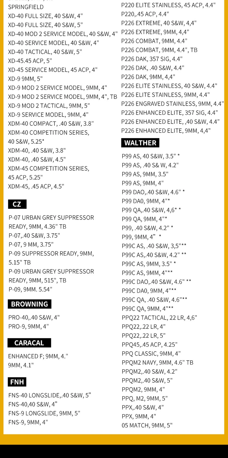 LISTO DEL SUPPRESOR P-09, 9MM,