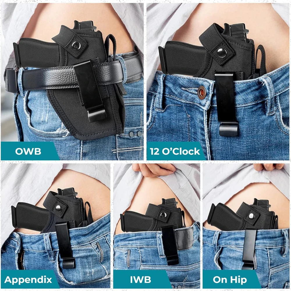 Funda Universal para pistola para hombres y mujeres, funda para pistola IWB OWB oculta con bolsa para revistas, dibujo a mano derecha e izquierda, se adapta a S&W M&P Shield 9MM 380 Glock 17 19 26 43