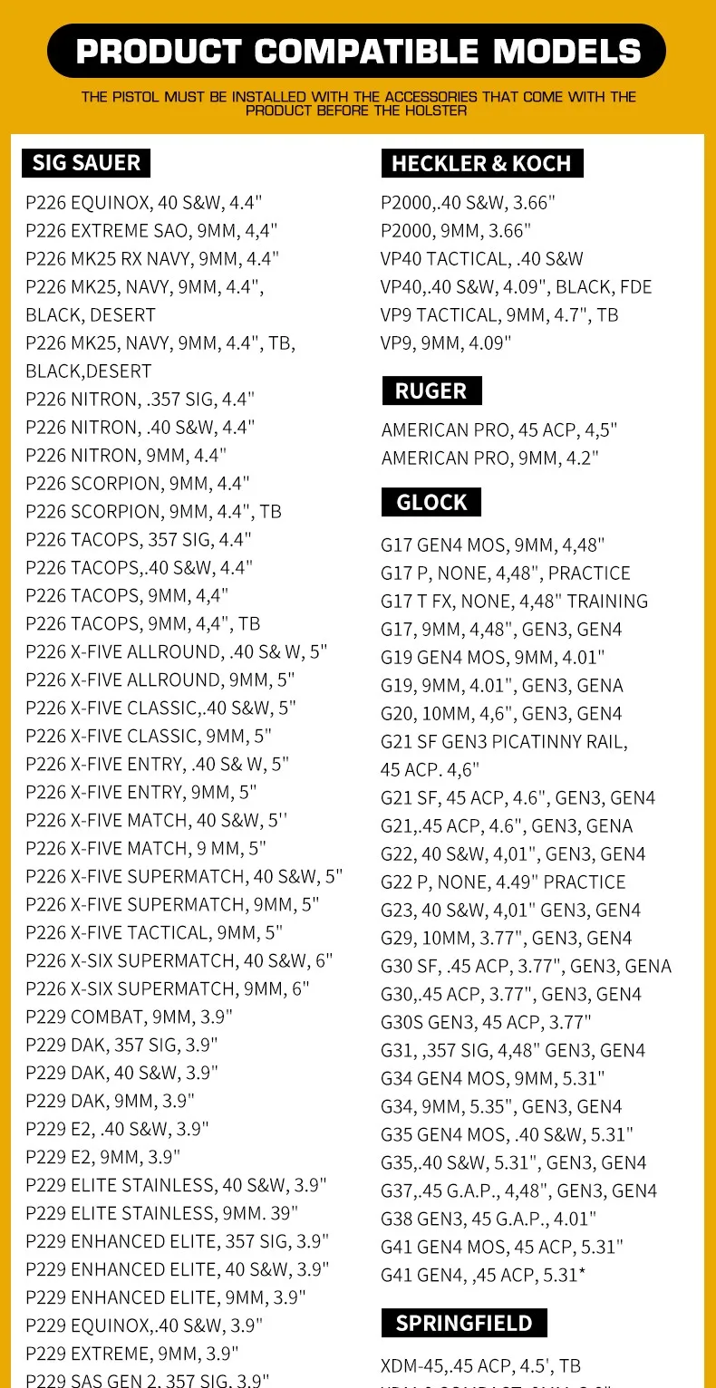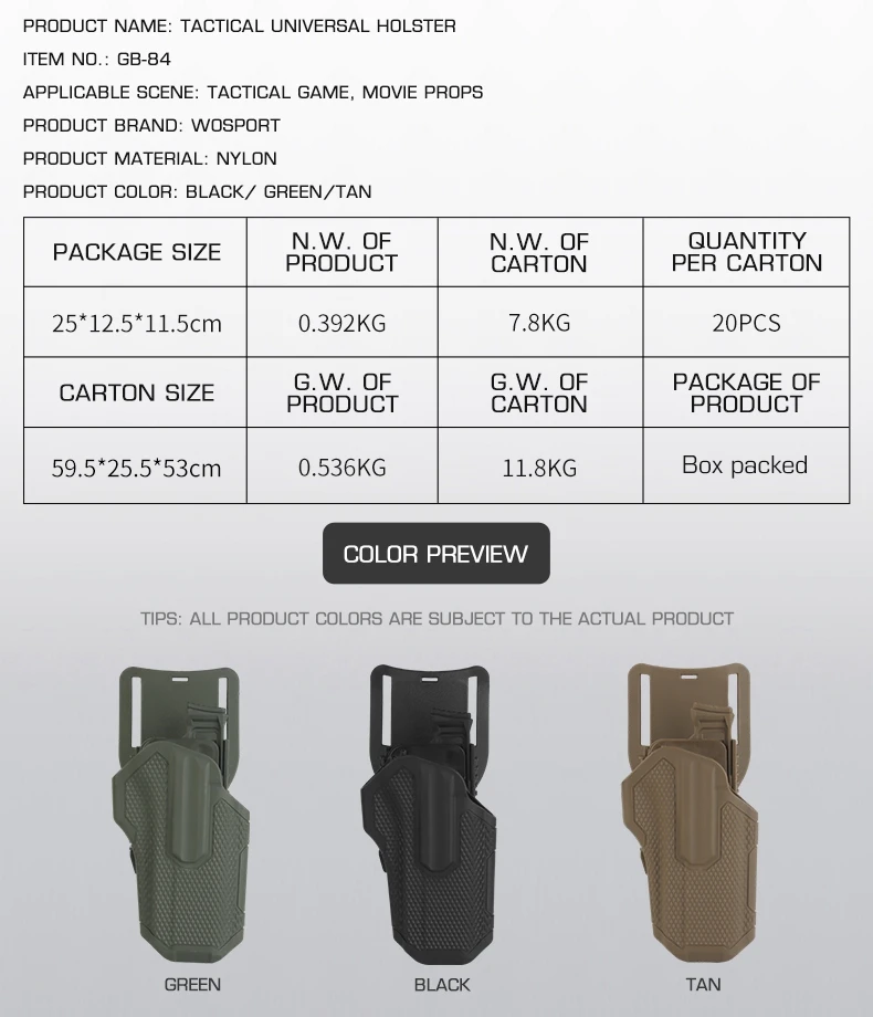 Sistema de liberación rápida QLS para funda de pistola universal;