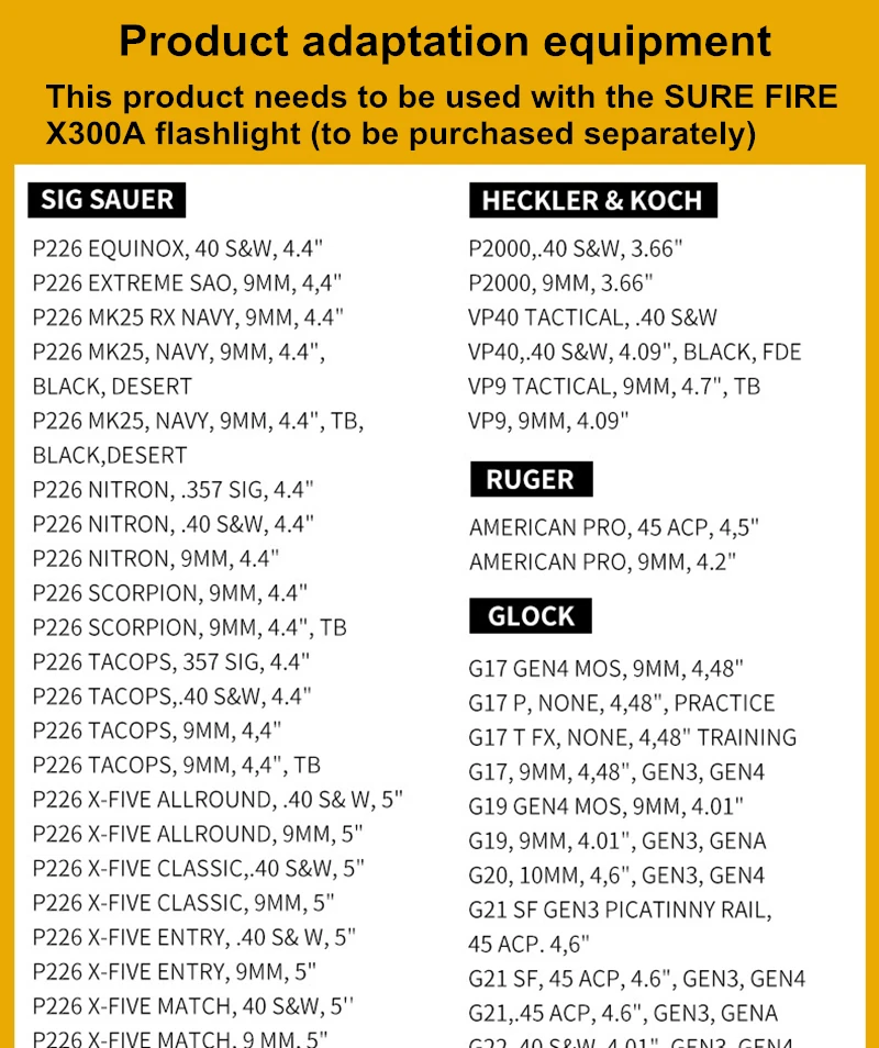 Nota: Este producto debe usarse con la linterna SURE FIRE X300U-A.Recuerde que debe ser una linterna "X300U-A"