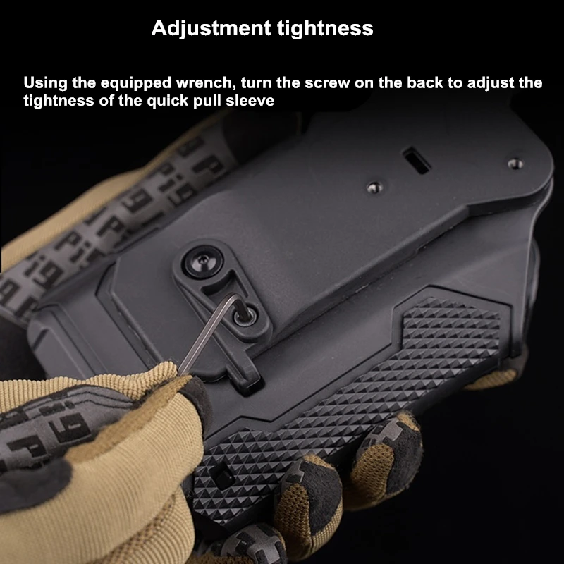 -La estanqueidad de la funda de cuero se puede ajustar mediante el tornillo trasero para adaptarse a diferentes modelos.