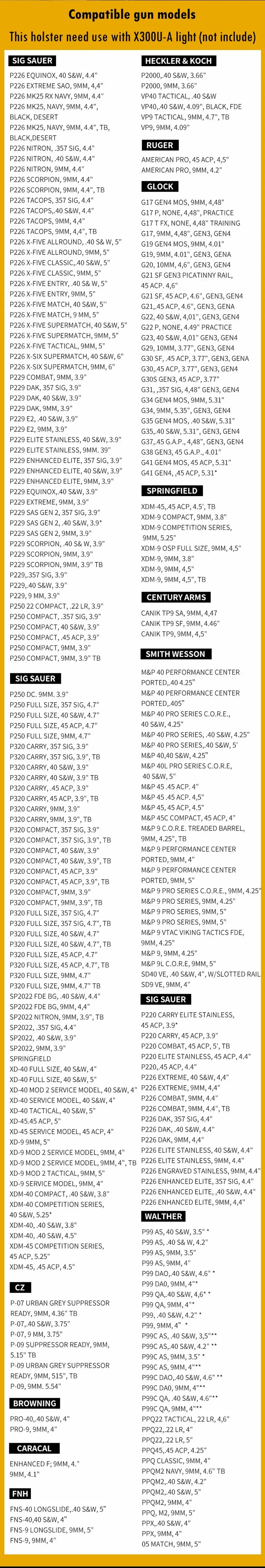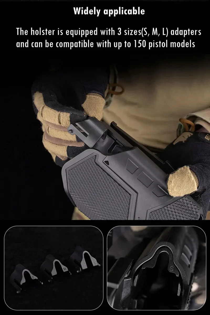 ●La funda está equipada con adaptadores de 3 tamaños (S, M, L) y puede ser compatible con hasta 150 modelos de pistola.