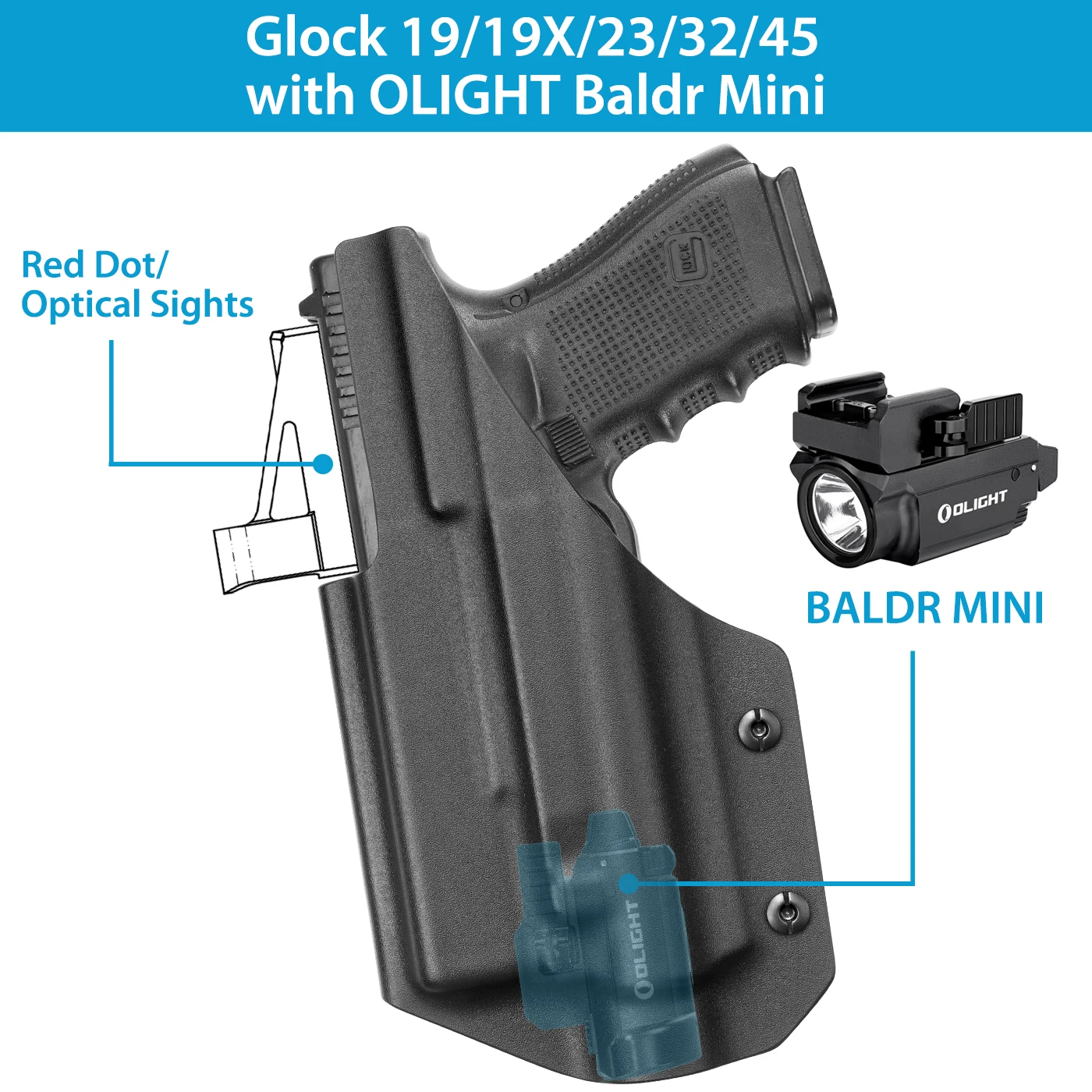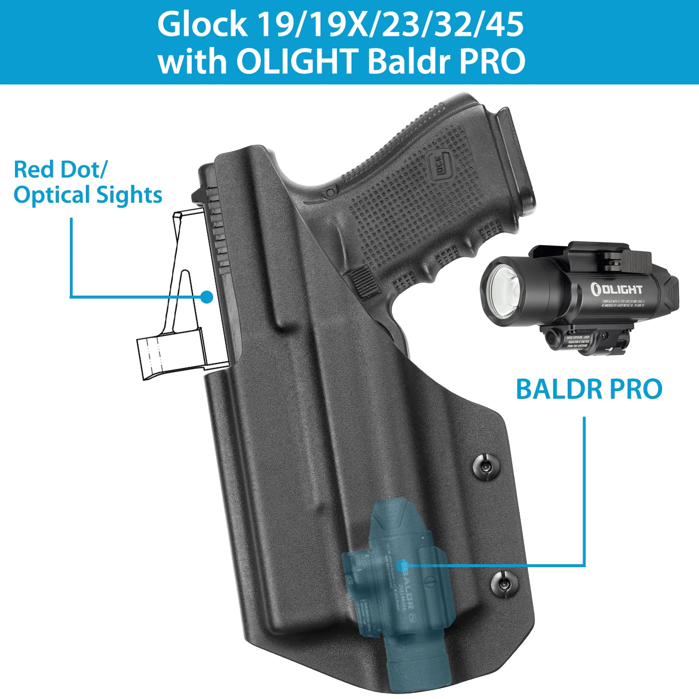 Está hecho a medida para G19 G19X G23 G32 G45 con BALDR PRO.Puede ajustar la retención con un destornillador suministrado dentro del paquete.