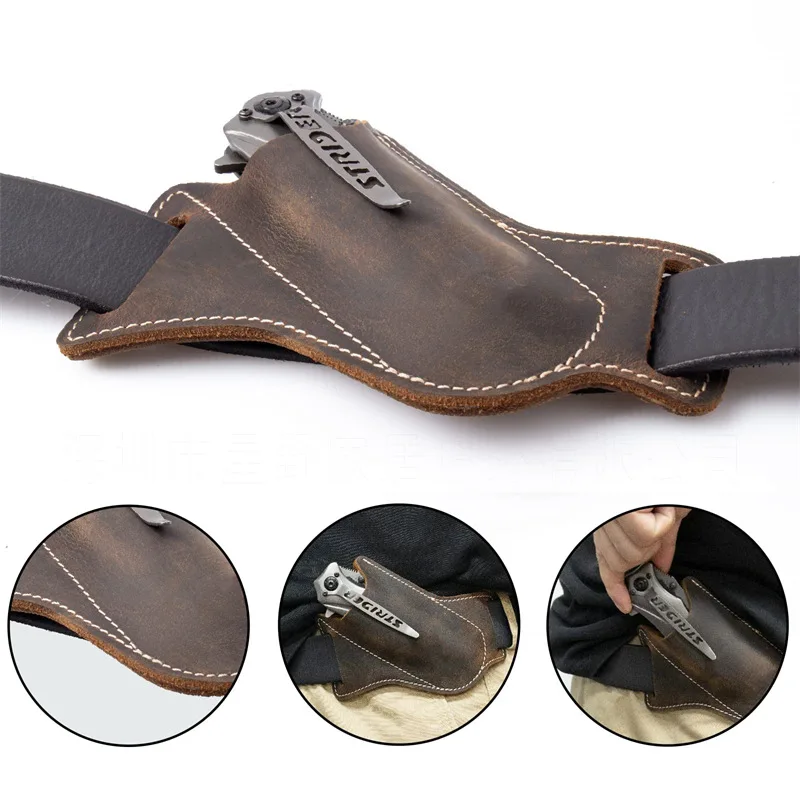 Fundas para cuchillos de cuero, soporte para cuchillos plegables, cinturón de supervivencia, bolsa con Clip, cuchillo plegable, paquete de cubierta de cuero antiarañazos, 1 ud.