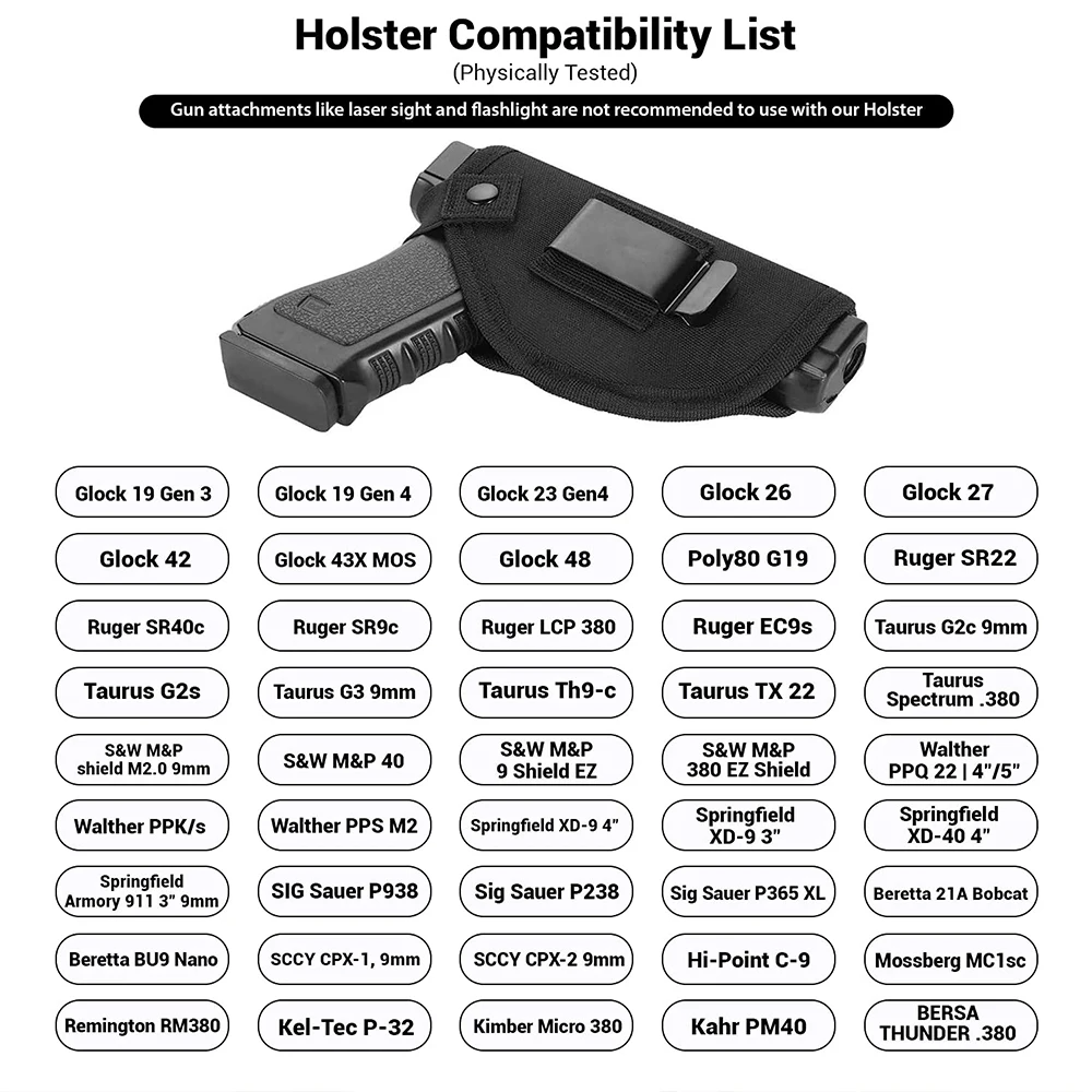 【Adaptabilidad versátil】Nuestra funda de pistola de transporte oculta se adapta a Glock(36, 39, 43X MOS), Ruger EC9s y LC9s, Taurus(G2c, G2s, G3), S & W M & P 9 Sheild EZ, Walther(PPK/s, PPS, PPQ 22), Springfield (2. °, 1. °, 1. °, 2. °, 2. °, 2. °, 1. °, 2. °, 2. Beratta(21A, BU9), SCCY (2017, 2) y Similar.