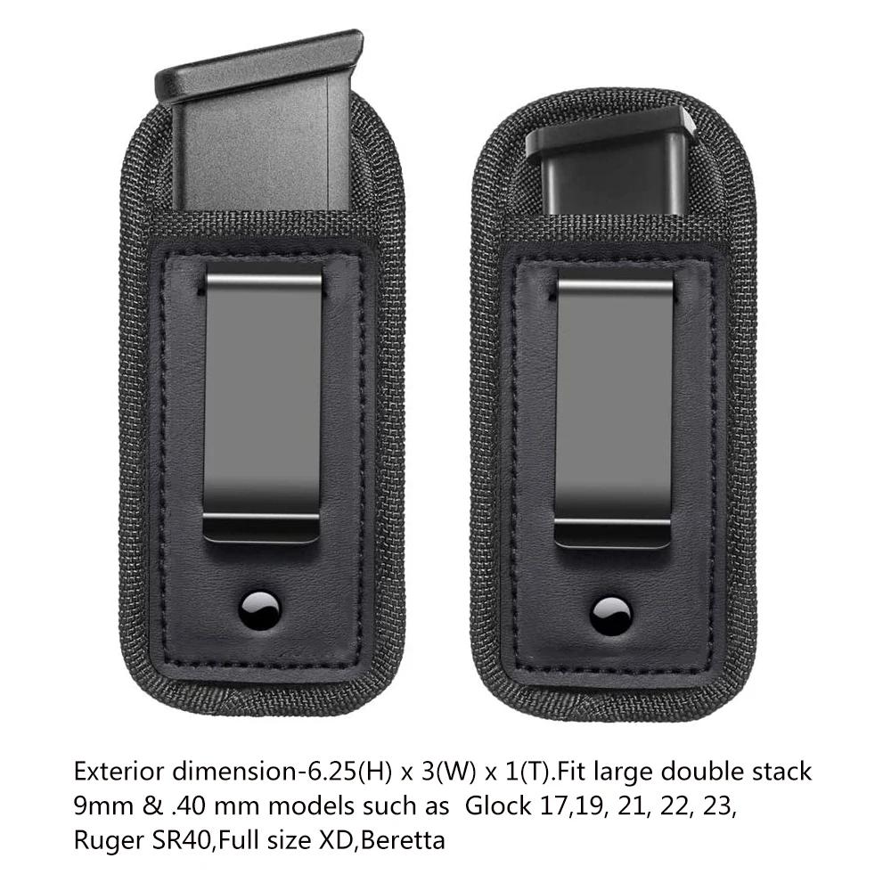 【Mag Compatible】 --- Dimensión exterior: 16cm * 7,62 cm. Se adapta a modelos grandes de doble pila de 9mm y 40mm. Apto para Glock 19, 21, 22, 23, Ruger SR40, tamaño completo XD, Beretta.