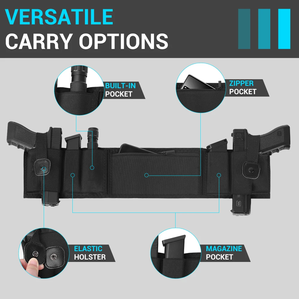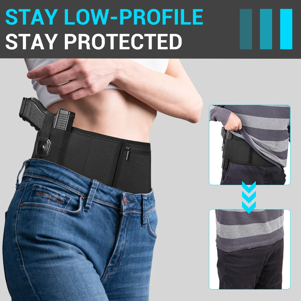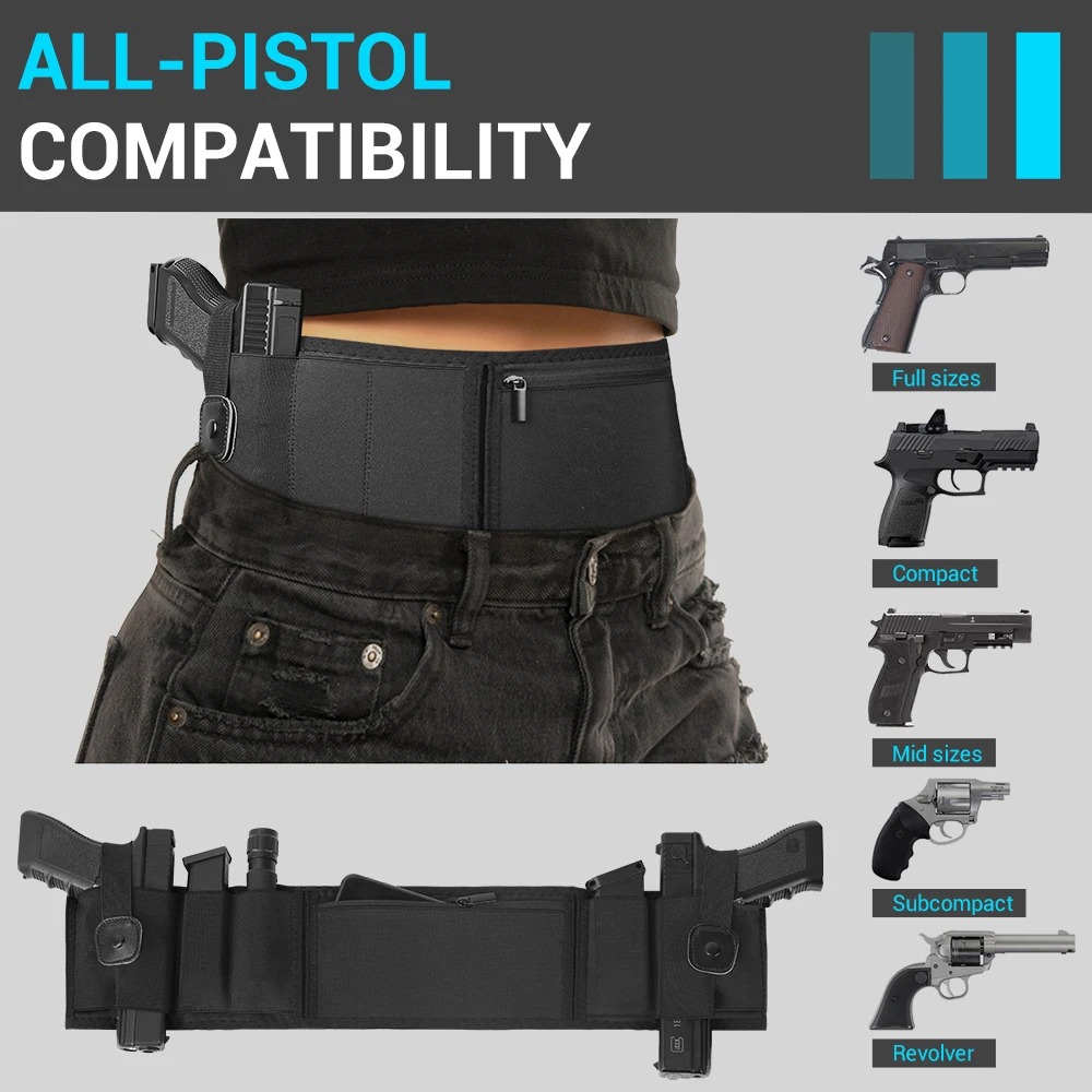 Funda Universal para Pistola de Barriga, Porta Pistola Táctica Oculta, Bolsa para Revistas, Cinturones Ajustables, Pistolera para Cintura