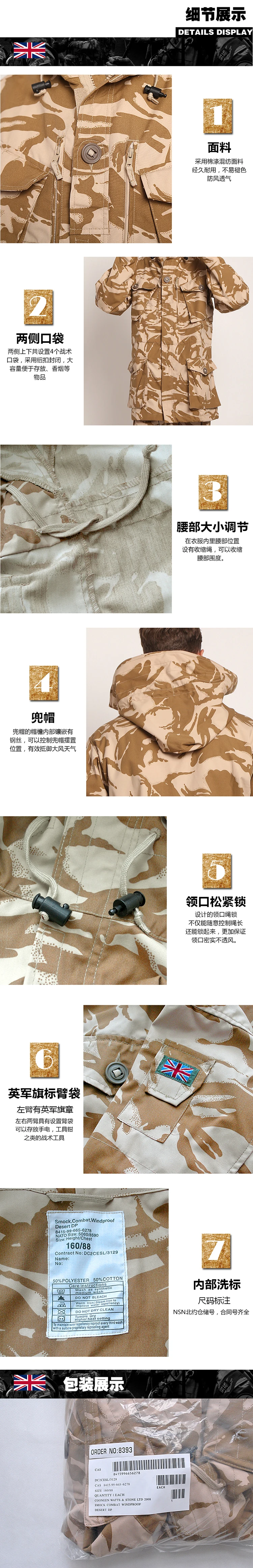 Gabardina de desierto para hombre, chaqueta táctica de combate al aire libre, Smock, edición británica, público, M65