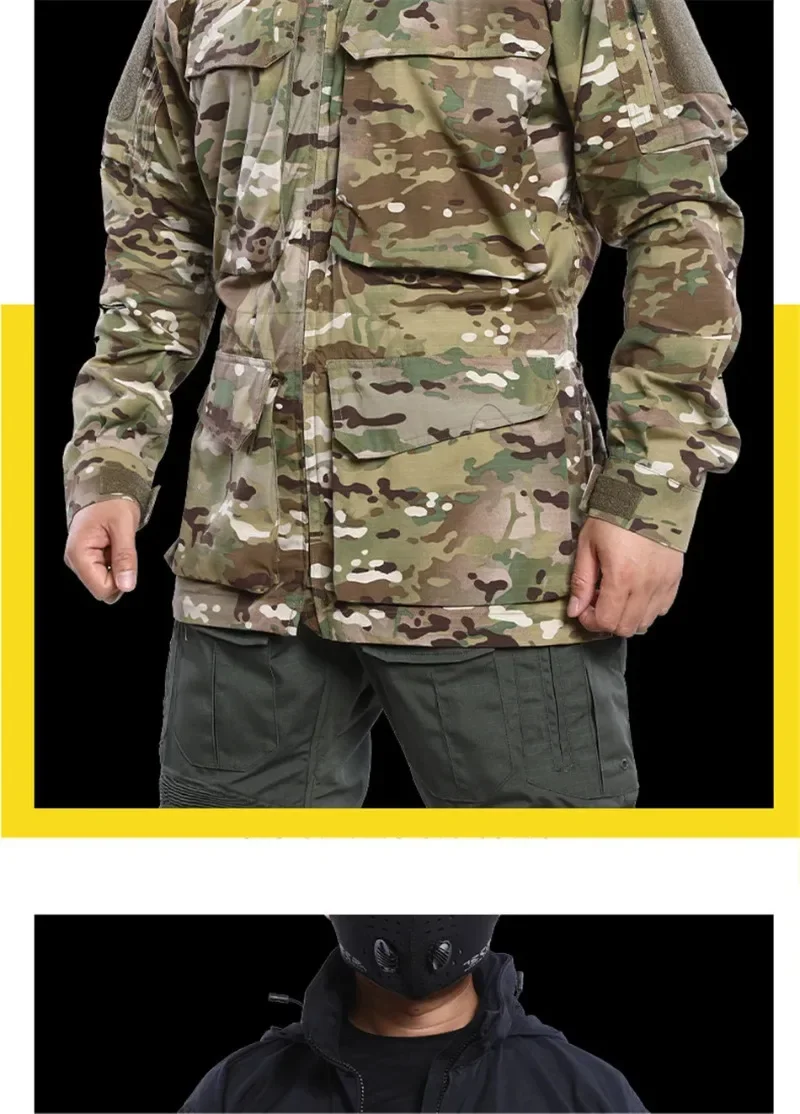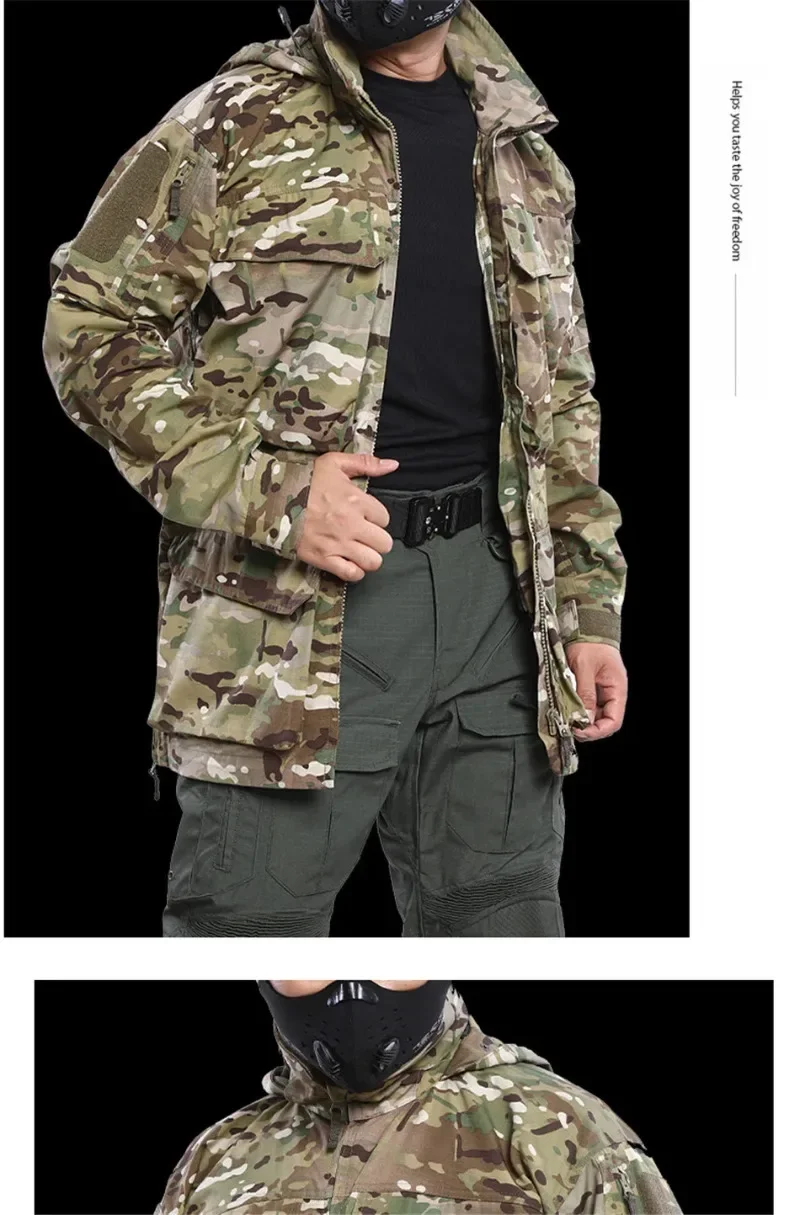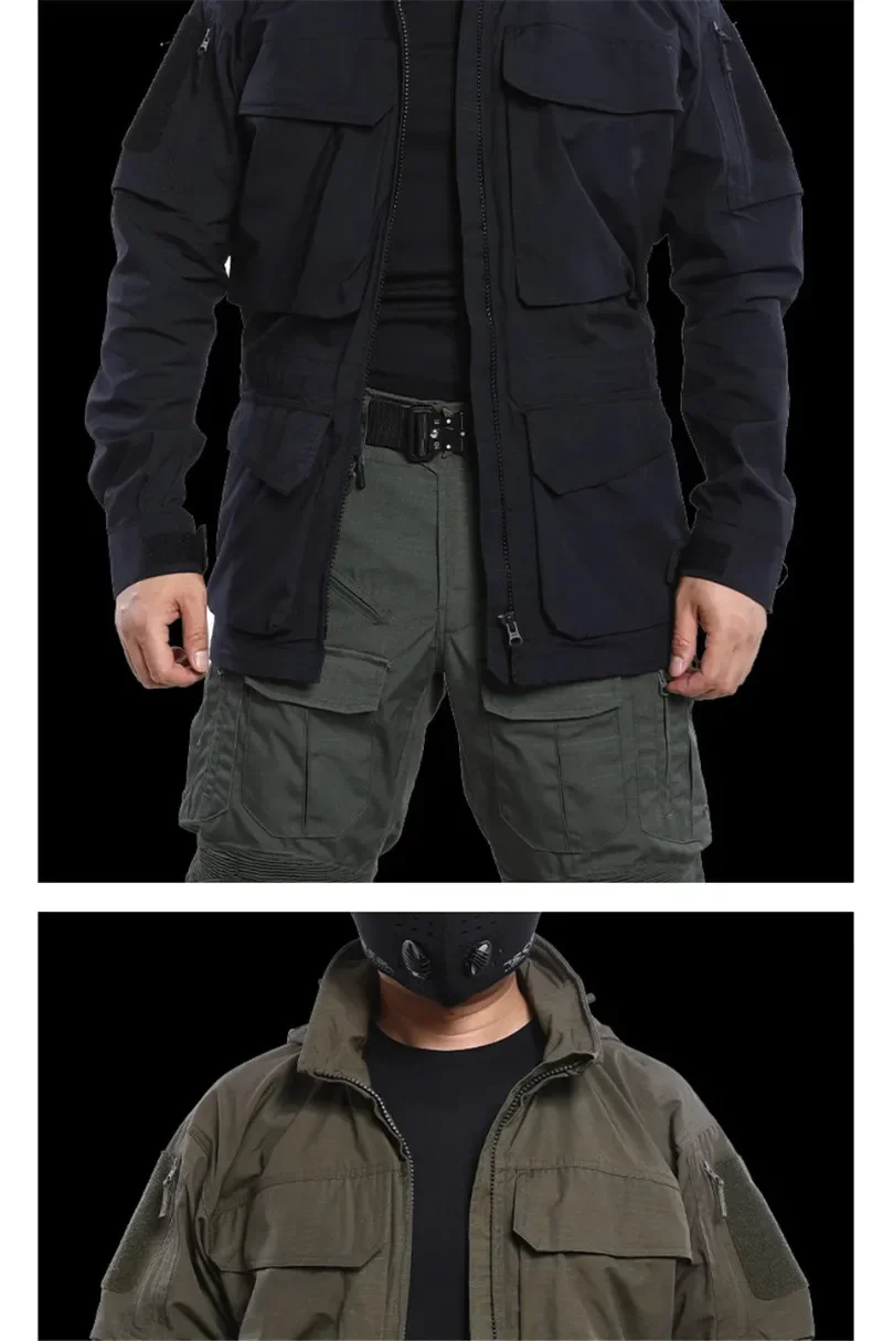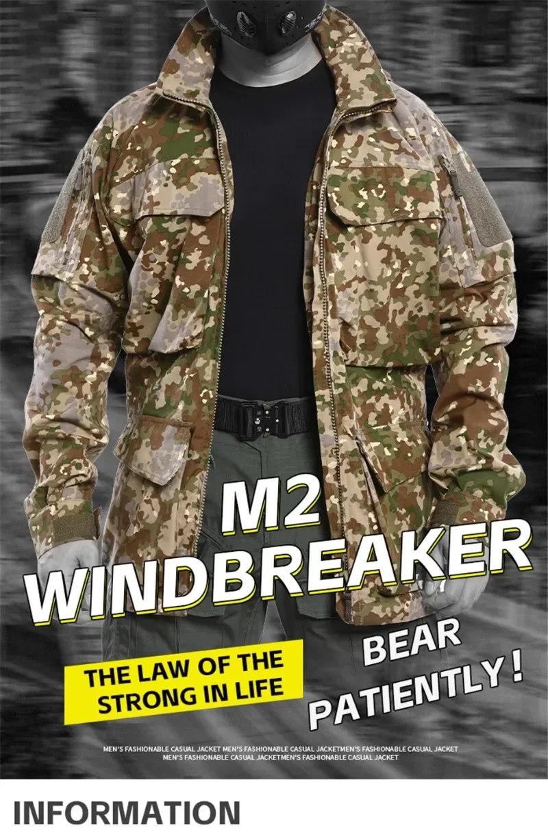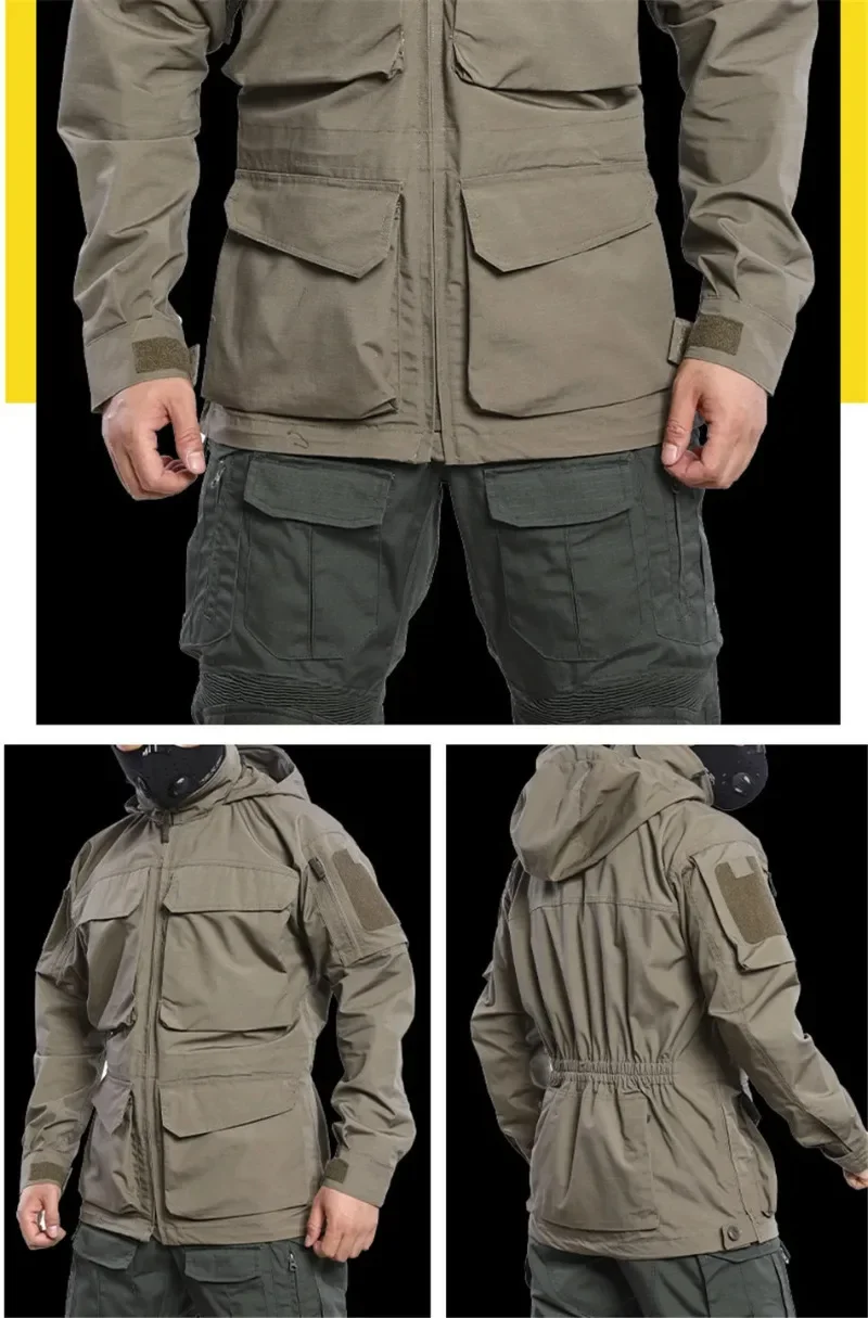 PRO M2 Chaqueta de camuflaje táctica de longitud media, rompevientos tácticos, abrigo, chaquetas Cargo para hombre, Parka con capucha y múltiples bolsillos