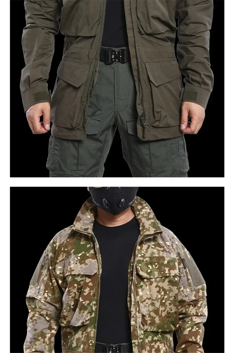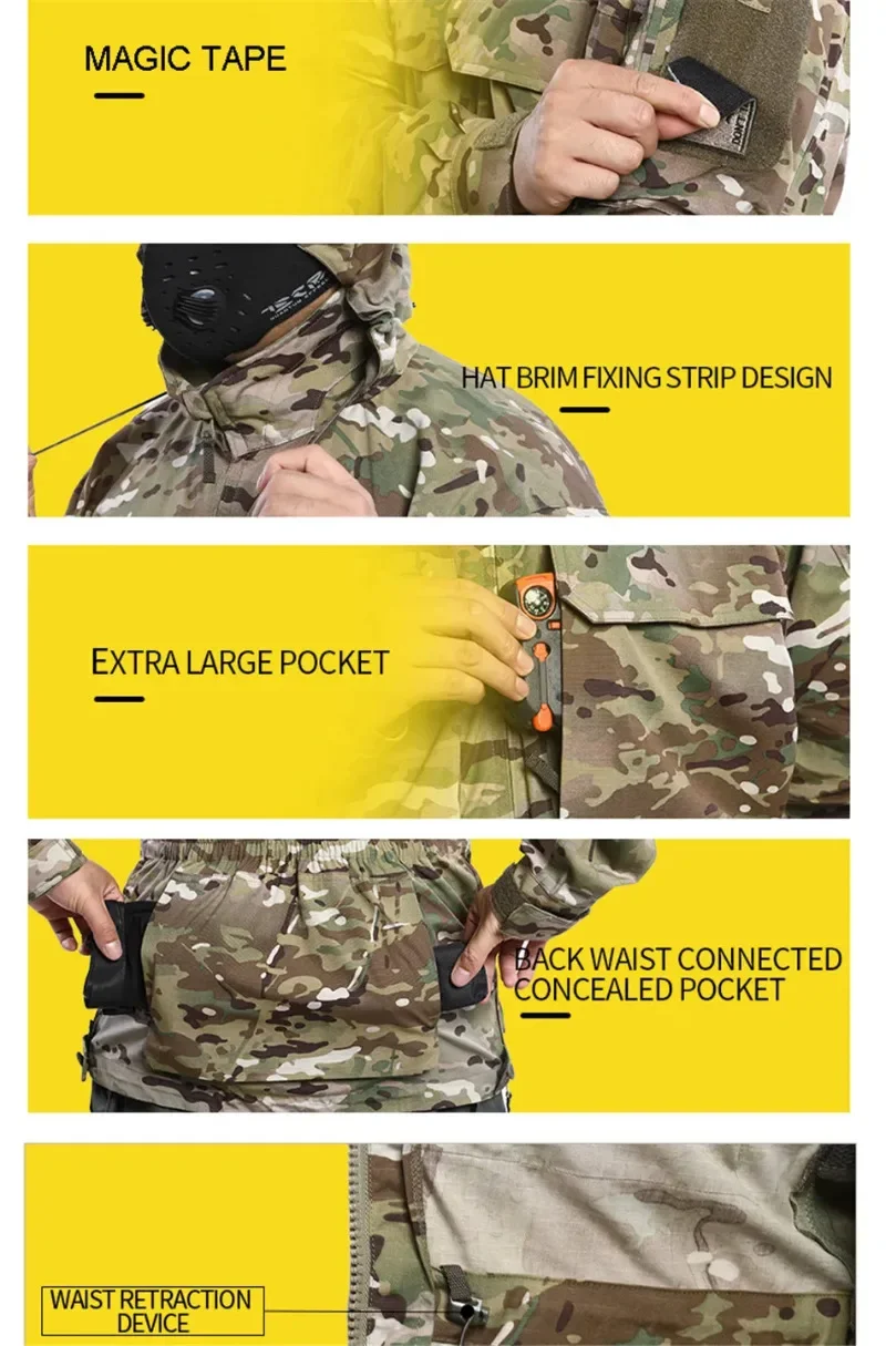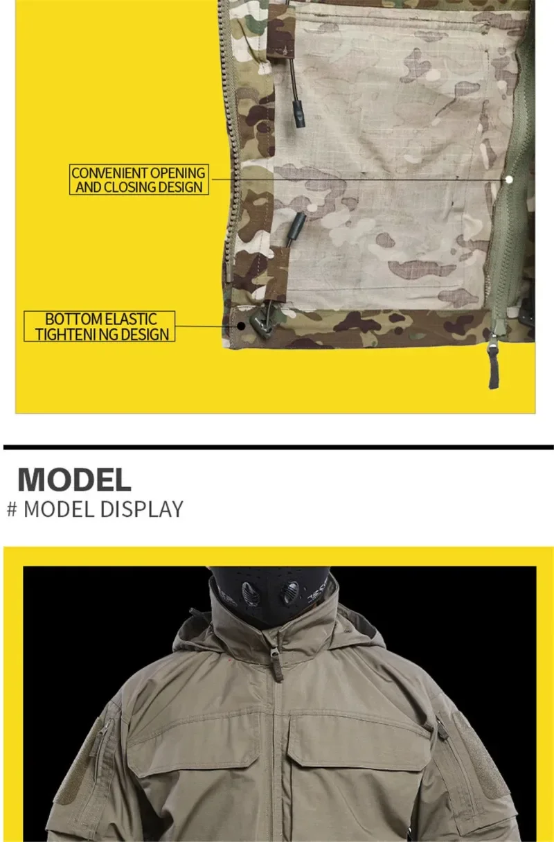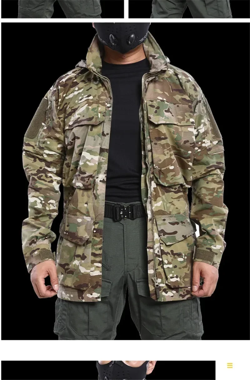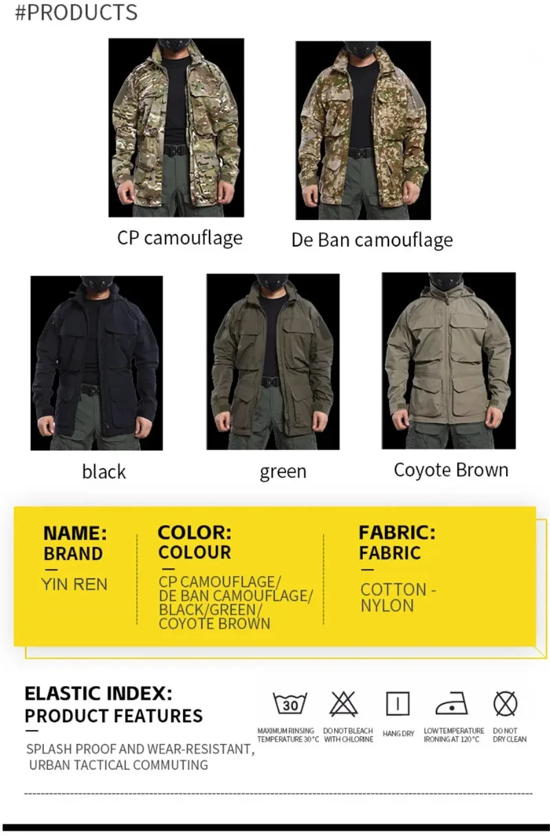 PRO M2 Chaqueta de camuflaje táctica de longitud media, rompevientos tácticos, abrigo, chaquetas Cargo para hombre, Parka con capucha y múltiples bolsillos