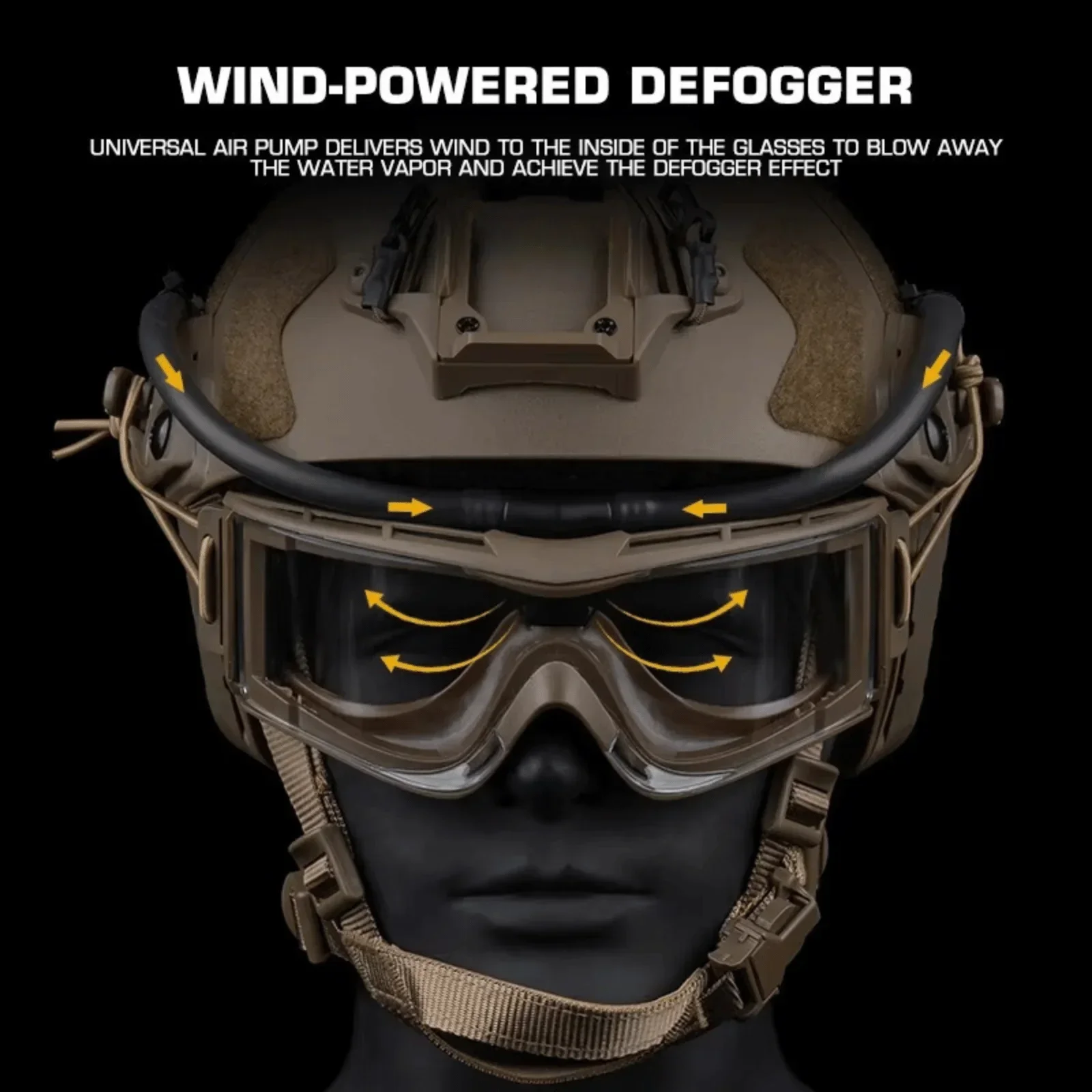 Gafas Airsoft inalámbricas, desempañador, ventilador, bomba antiniebla en casco táctico o tapas para gafas de seguridad con sello de goma
